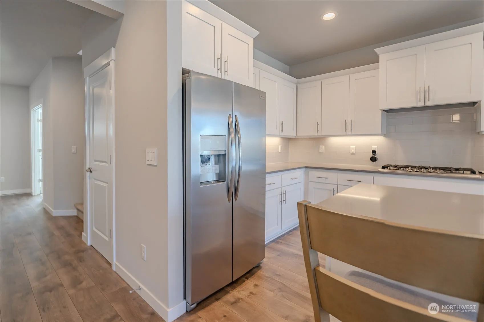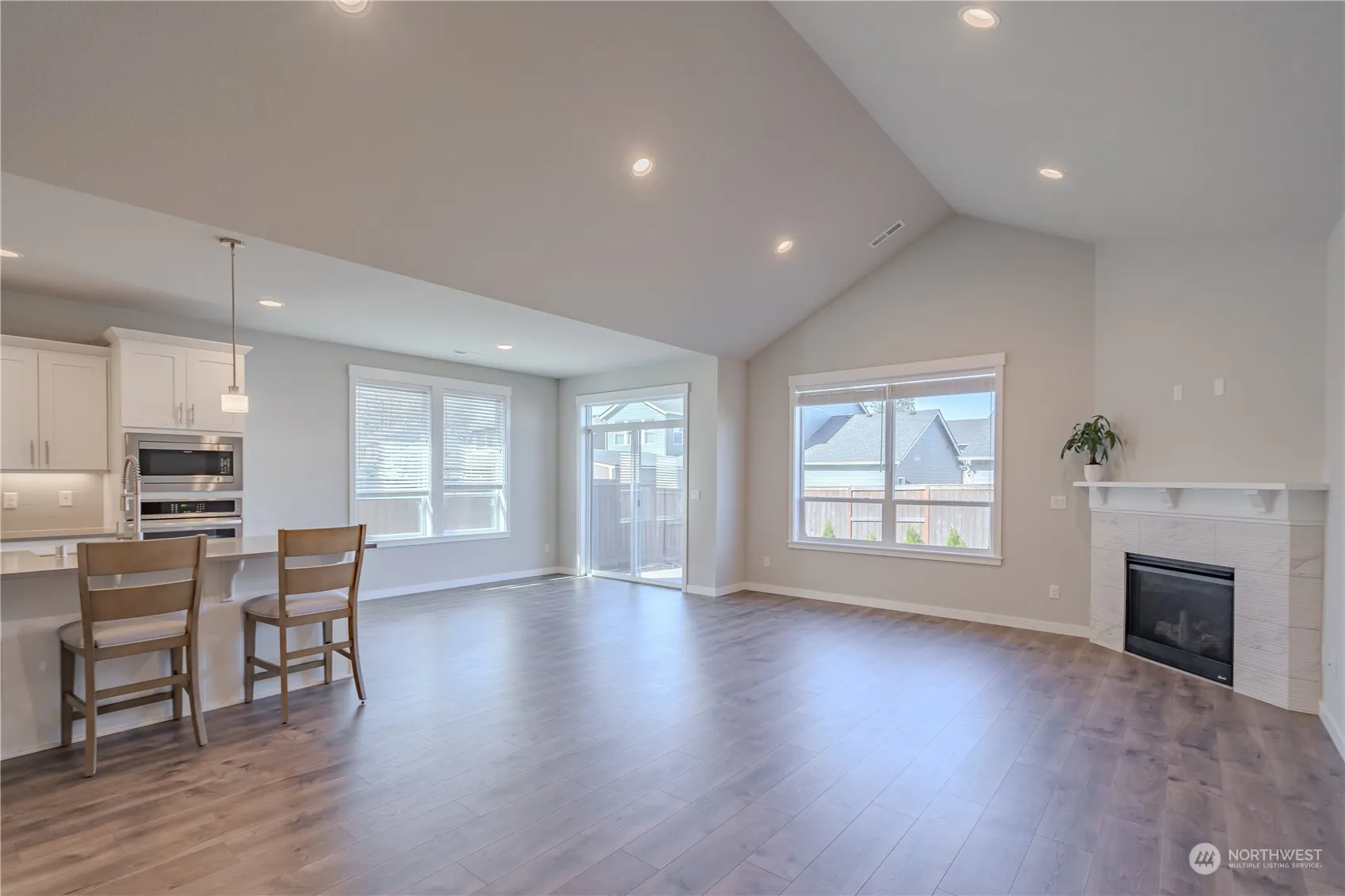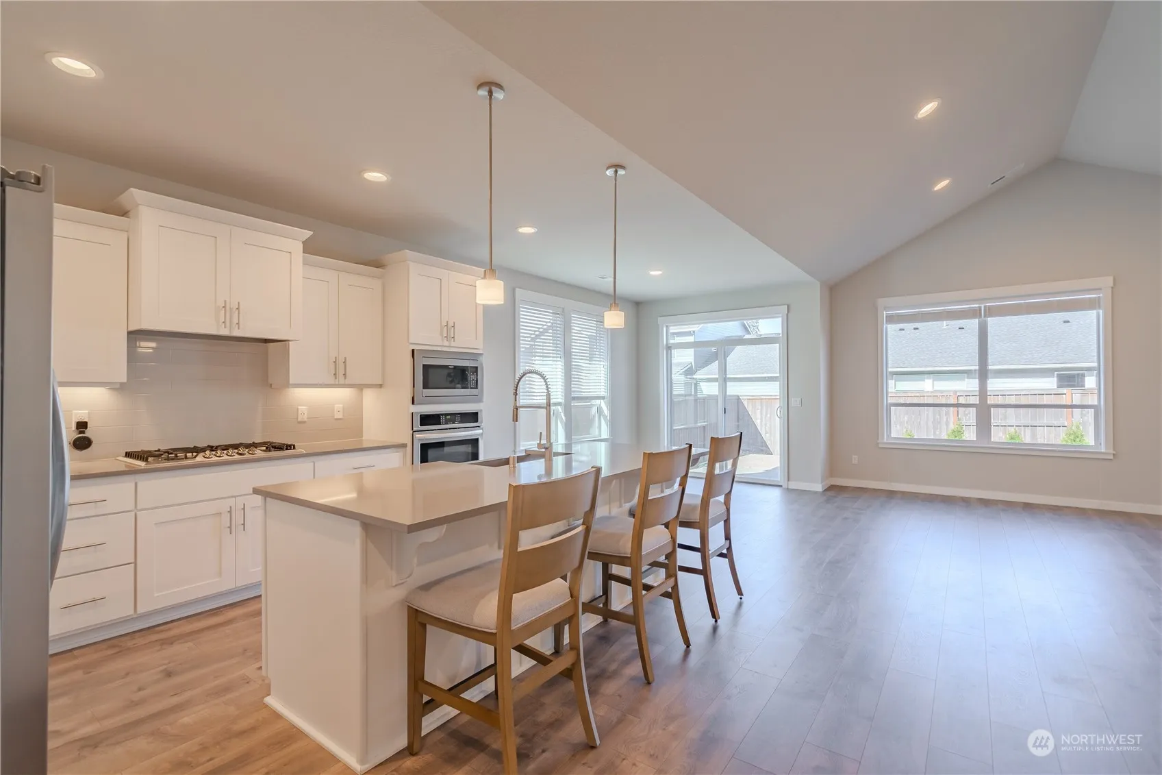 Luxury Living in this 4 bed, 2.5 baths home in a peaceful neighborhood with walking trails surrounded by green space and mature trees. This gem features a gourmet kitchen with stainless steel appliances, gas cooktop, built-in oven, soft-close cabinets, and under-cabinet lighting. Indulge in the main-floor primary bedroom, with spacious walk-in closet, an elegant walk-in shower, soaking tub, and separate toilet room. Main-floor laundry with garage access. Laminate flooring on the main floor, soaring vaulted ceilings, and gas fireplace in the open concept living area. Upstairs offers a large loft, two bedrooms, and a full bath. Outside find a private fully fenced backyard with play structure and a 2022 built 8×12 shed with upgraded shelving.