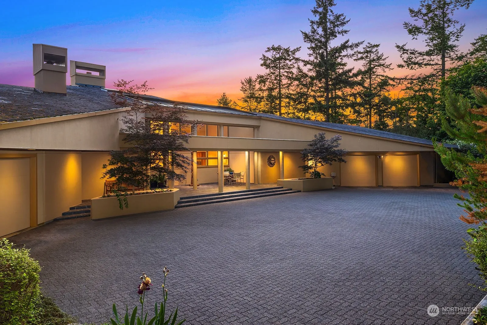 One of the most iconic homes in Friday Harbor this modern estate offers some of the Island’s most stunning views. Sited down a scenic private drive & built to blend seamlessly with nature. Open spacious one-level living. Walls of windows capture the views. Fantastic floor plan. Chef’s kitchen, exquisite living/dining spaces; an entertainer’s dream! Multiple French Doors open to the terrace perfect for summer dinner parties. Amazing built-in fire table. Epic sunsets & twinkling nighttime views of town. Watch the ferries sail by from the luxurious primary suite. Media room. 8 acres of natural beauty. A spacious lawn flows to low bank waterfront & coveted dock. Garage space for the car aficionado. The ultimate in island living & entertaining!