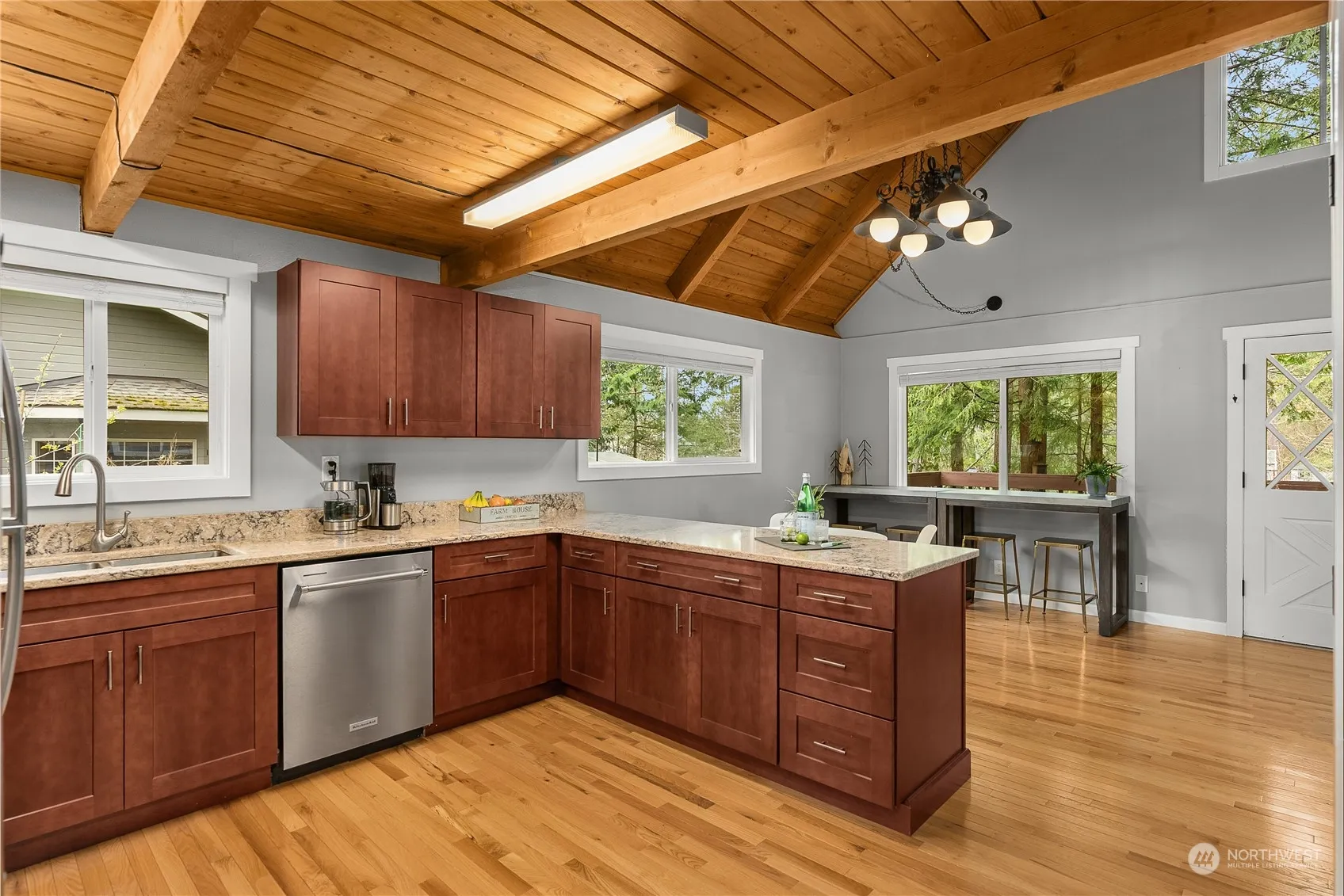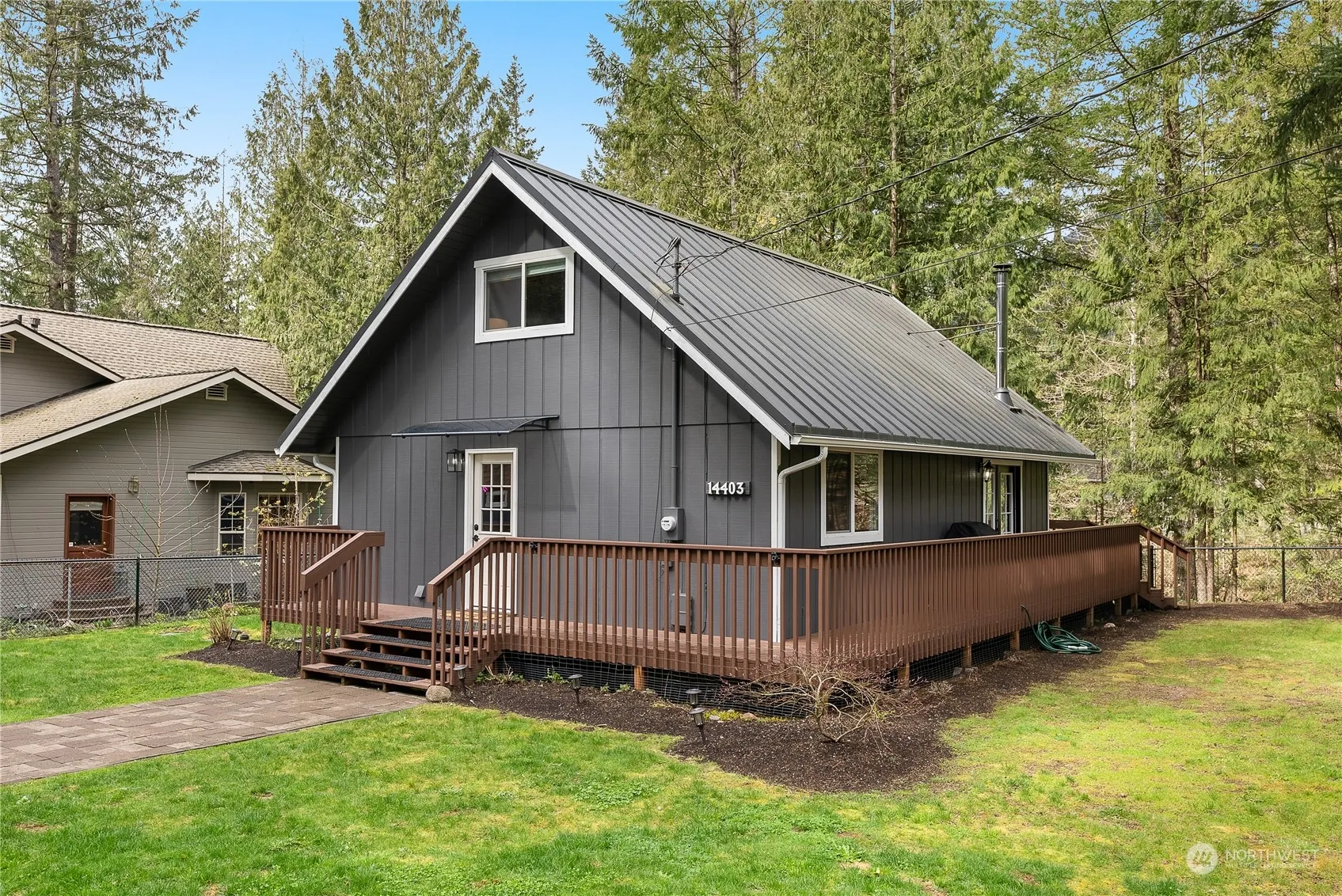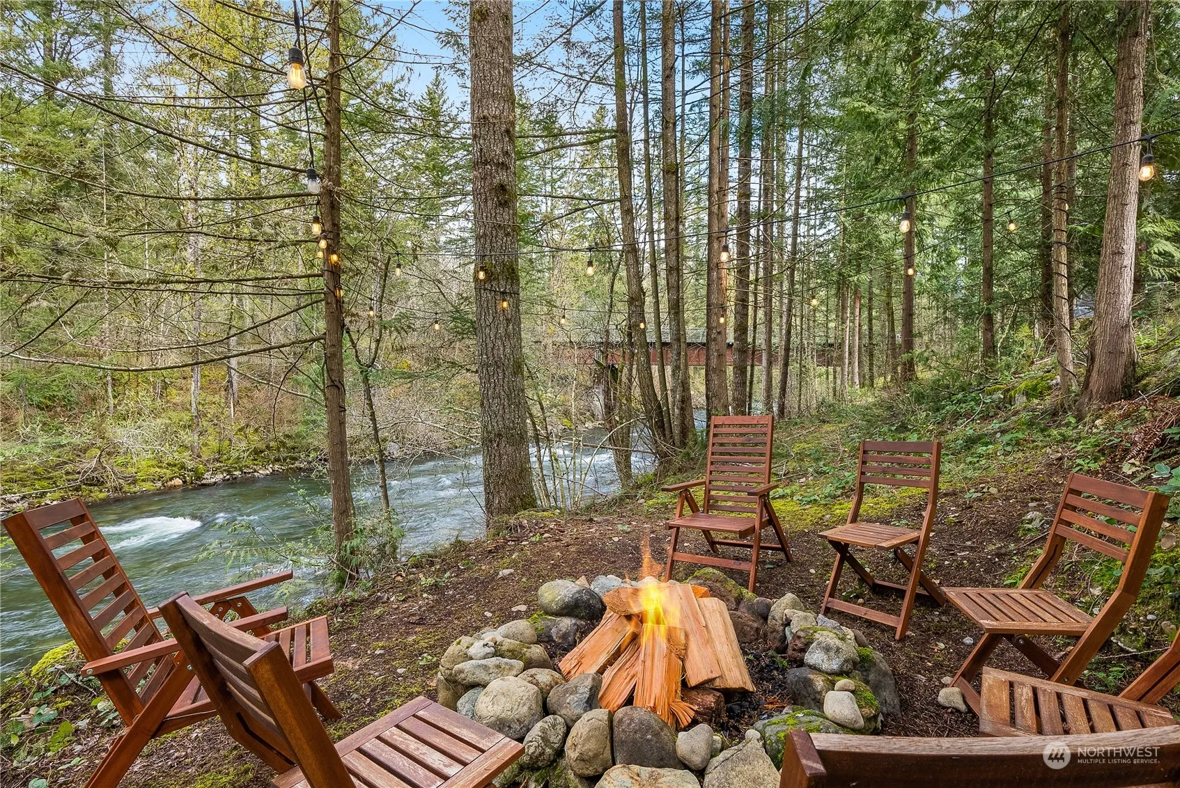 Soak in the sights and sounds of nature in this A-frame home along the banks of the South Fork of the Snoqualmie River. Inside you will find soaring exposed wood ceilings, tastefully updated kitchen and bathroom, an expansive primary bedroom loft and an inviting wood stove. Step outside and enjoy the wrap around deck, fully fenced yard, two storage sheds, covered parking and fire pit overlooking the river. Just steps from the Snoqualmie Valley Trail, and with easy access to Rattlesnake Lake, Little Si, all North Bend amenities and countless outdoor activities (hiking, biking, skiing, paddle boarding), this home is the perfect blend of riverfront cabin and modern convenience. The great outdoors await you!