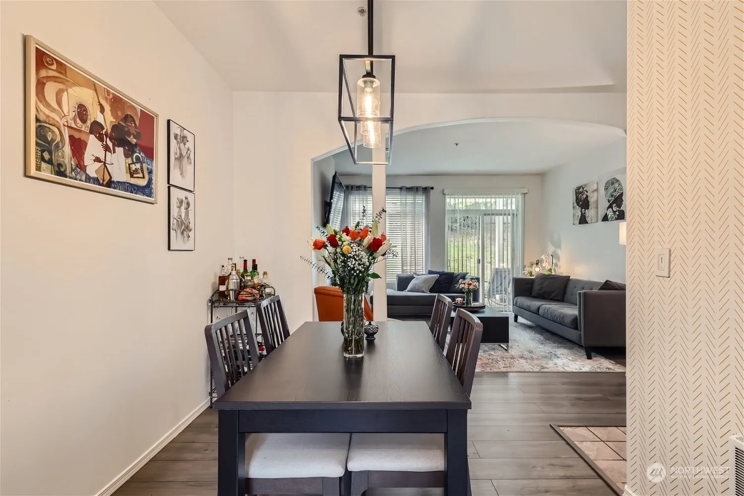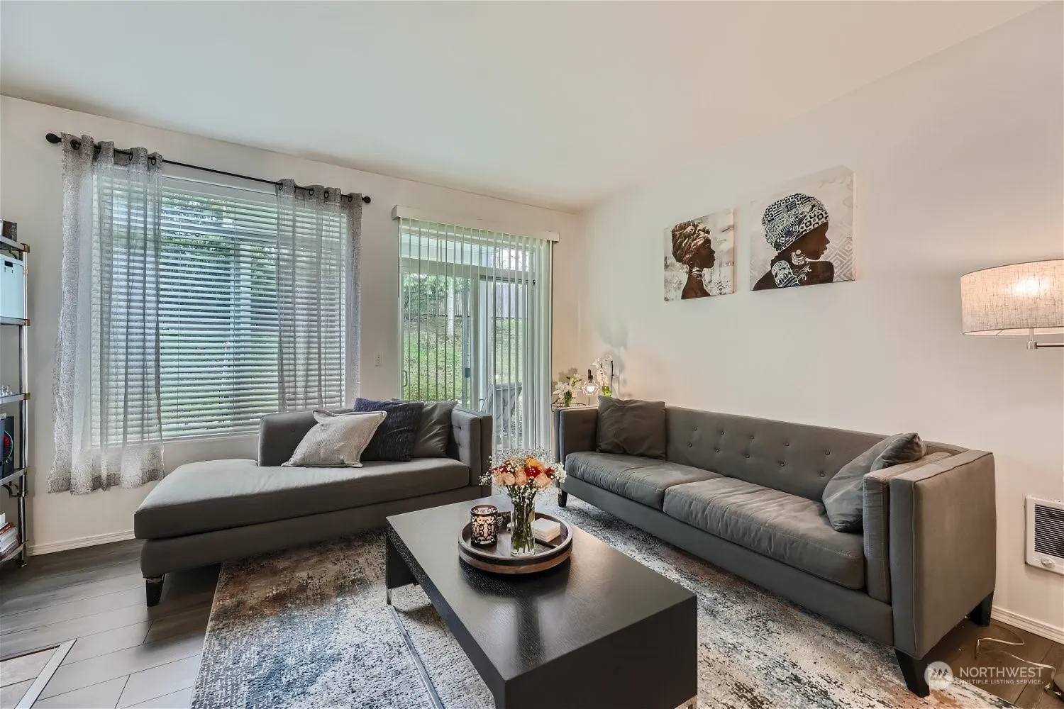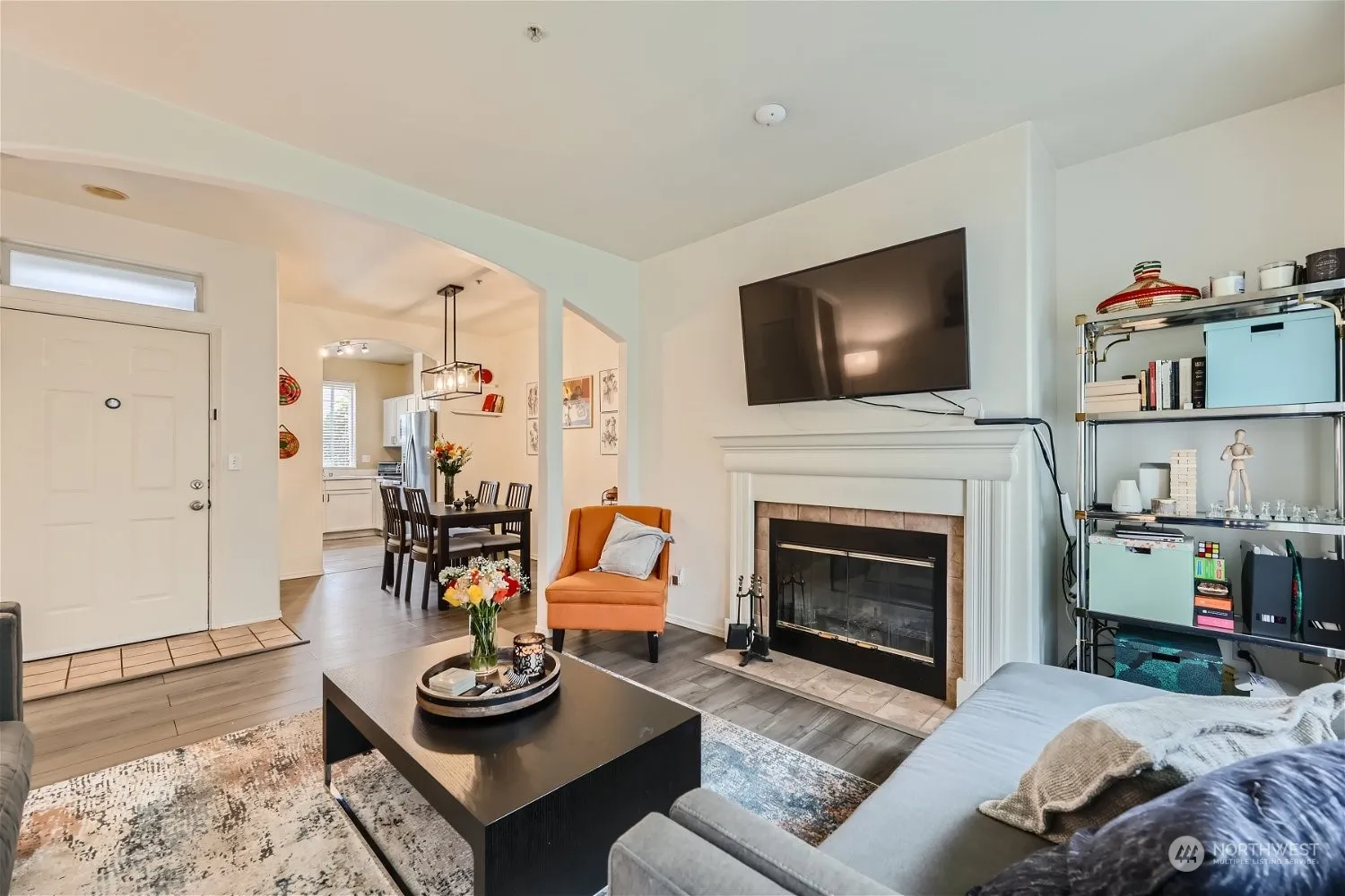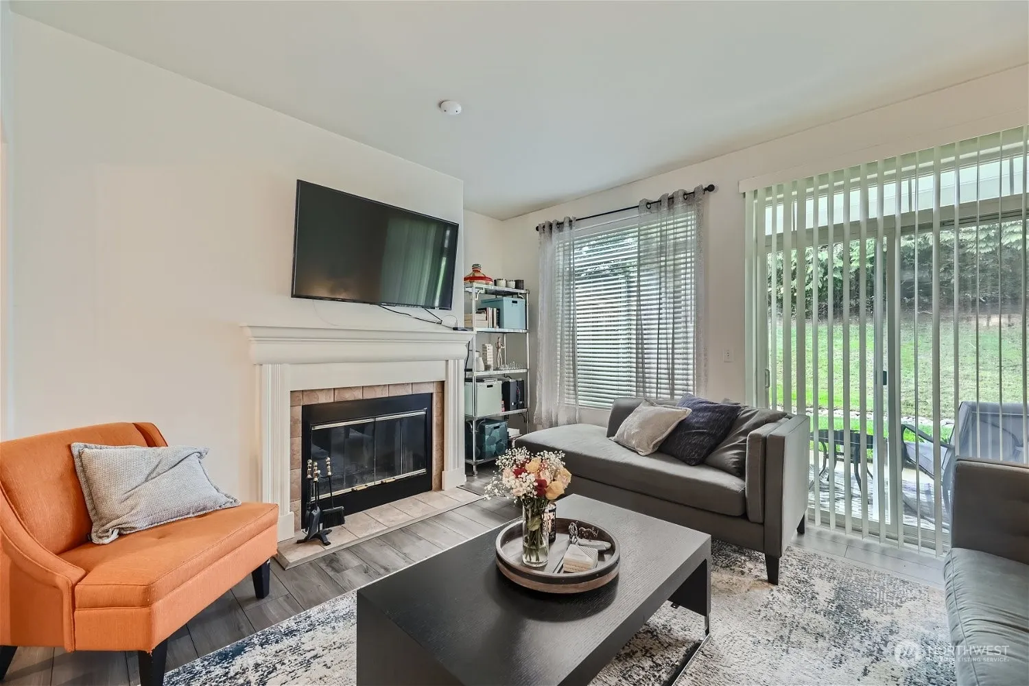 Commuter’s Dream! Immaculately maintained! Move- In Ready. Light filled with home w/high ceilings, archways & fireplace make this lovely ground flr handicap accessible unit welcoming. Newer Stainless Steel appliances (2020) ample counter space in kitchen. Updated bath in 2023, new tub surround, vanity & toilet. New light fixtures & blinds throughout. Full size washer & dryer in unit. Newer laminate floors in Liv/din & kitchen. Plus a 6’x12′ storage unit. Quiet complex is conveniently located near Boeing/shopping, freeways, transit & schools. Club house/rec room, exercise rm & playground. Enjoy sunsets from greenspace & private back patio. 1 covered parking space, uncovered guest parking. Lynnwood Light rail to Start in August. Welcome Home!