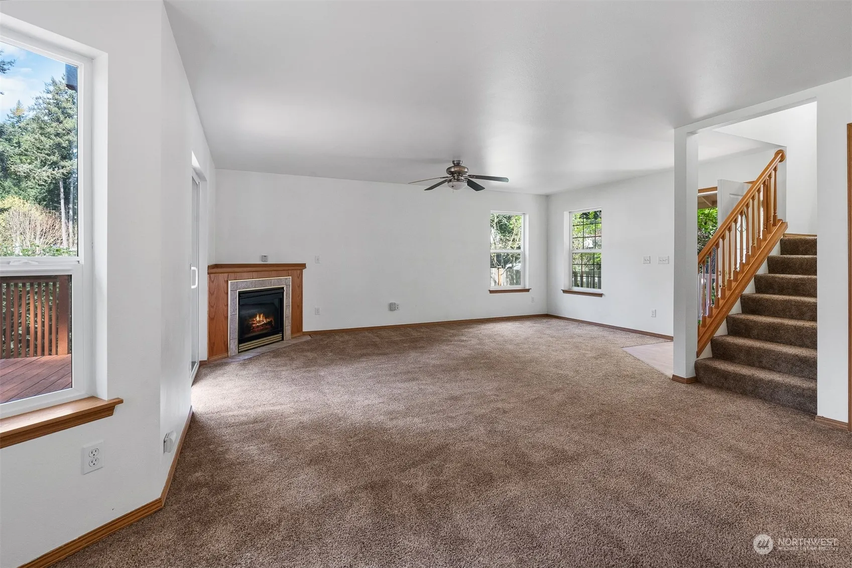 Amongst the majestic Douglas firs, your home is waiting for you! Propane fireplace provides ambiance to the flowing floor plan offering nearly 1600 sqft of Living space. Natural lighting flows through the bay window in Dining rm w/ pass-through to Kitchen for easy serving/entertaining. Three bdrms are all located on the upper level including Primary Suite completed w/walk-in closet. The fenced back yard is ready for your four legged friends while you enjoy nature on the expansive deck. Forget pesky power outages: set up for back up generator. Unique, one of a kind setting in the gated Clearwood community offering swimming pool, three lakes w/picnic areas, bbqs, & boat ramps. Close to Lackamas Elementary & JBLM East Gate.