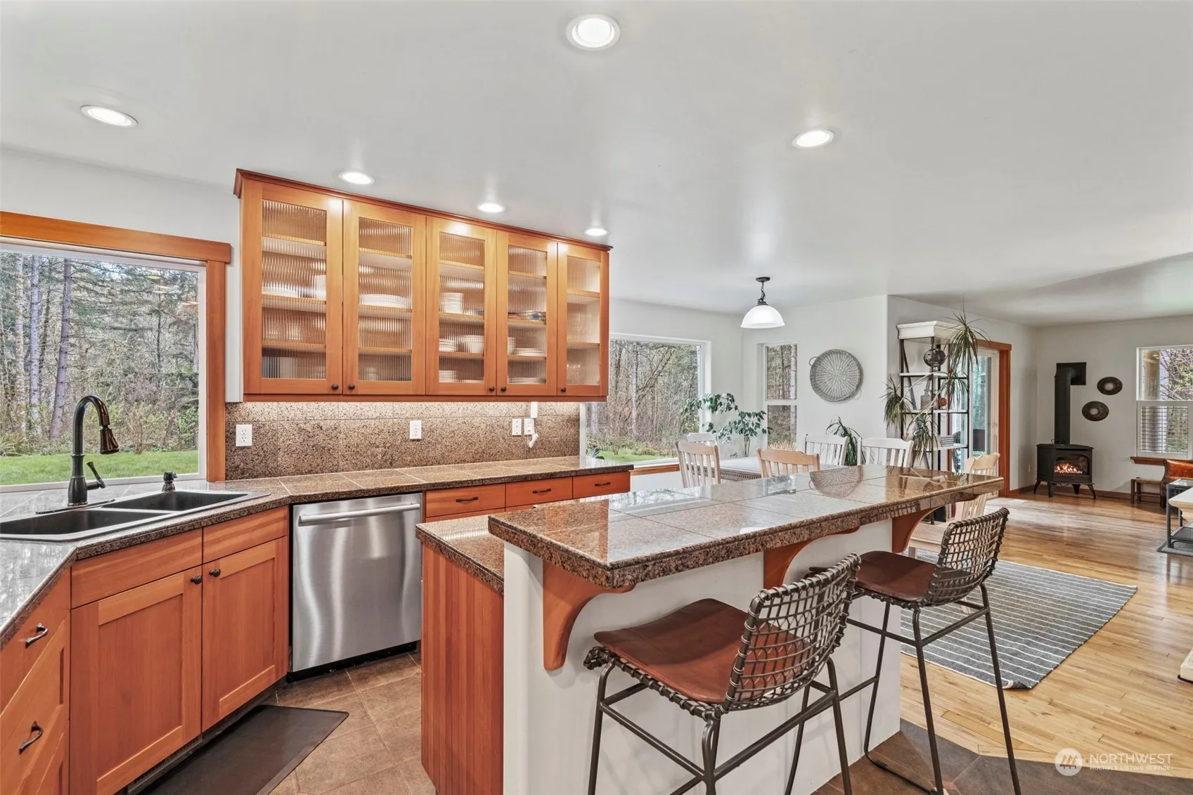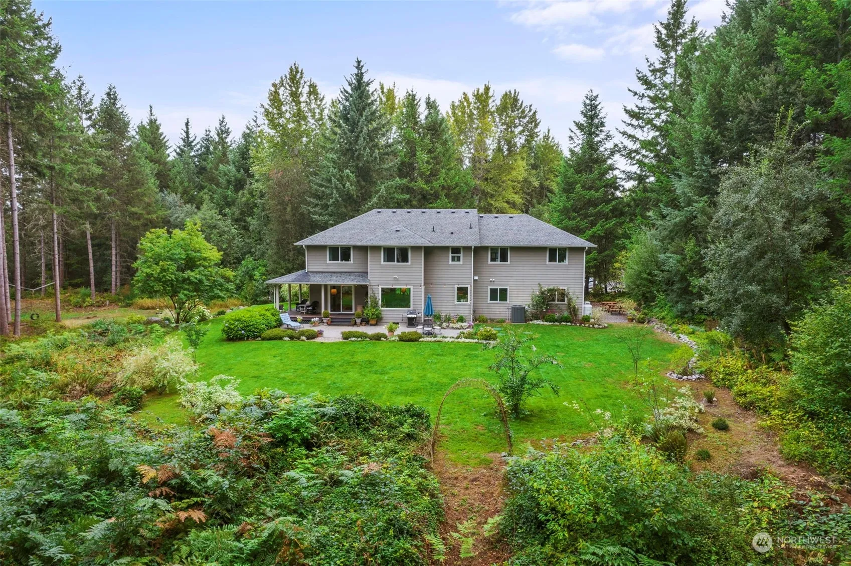 Tranquility meets quality on this secluded 5-acre estate adorned w/ Master Gardener foliage. This exquisite home features wrap-around porch, a peaceful escape in all seasons. Craftsmanship is found throughout from the rich wood floors & solid wood staircase to the beautiful cabinetry. The kitchen centers around an inviting island & features granite tile counters, stainless steel appliances & a sink overlooking the natural surrounds. Primary features 5pc ensuite & walk in closet. Expansive living spaces are bathed in natural light w/ shutters, a cozy yet sophisticated atmosphere. The vast grounds invite outdoor activities & relaxation. A serene retreat blending comfort w/ nature just about 15mi from both JBLM & Lacey. Welcome to your oasis.