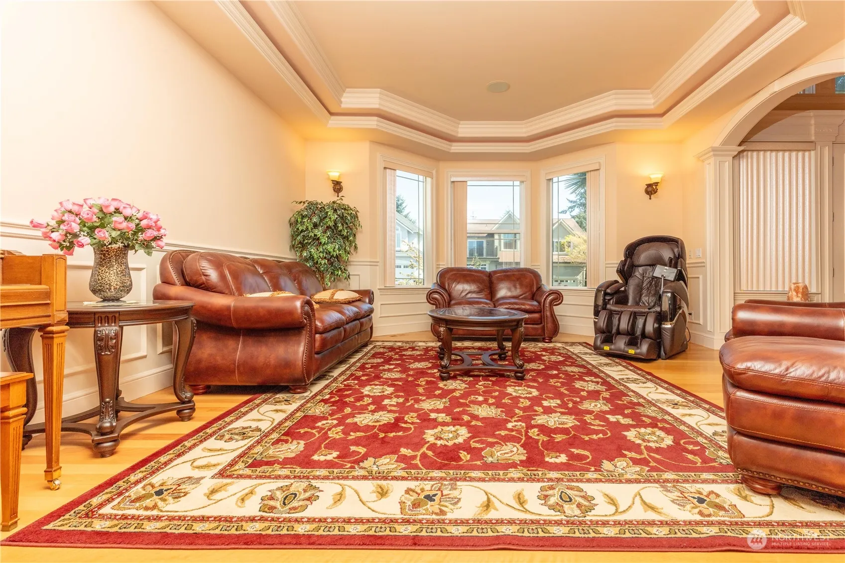 Welcome home to this elegant living in the Federal Way area with peek views of the Sound & mountain! The home features vaulted ceilings, 5 bedrooms, 3.5 baths, bonus room, and den 2-story with slab granite countertops. The light filled main floor has Brazilian maple hardwood floors, kitchen with stainless appliances, and stained cherry. The primary bedroom bedroom features a 5 pc bath & walk in closet. Enjoy the heated marble floors in bathrooms, built-in vacuum system & wired for music. This home also has the 3 car garage, AC to enjoy in the summer, and a fully fenced large backyard with sprinkler system.