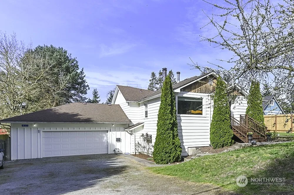 Welcome to this charming home featuring a complete MIL apartment w/ separate entrance! Main floor features: Living room w/ cozy wood fireplace, formal dining room, kitchen w/ marble countertops & gas stove top, huge laundry room w/ tons of cupboard space, primary bedroom w/ spacious closet & primary 3/4 bath w/ custom tile shower surround, full bath & two additional bedrooms. Downstairs features: Spacious bonus room for entertaining w/ French doors leading outside & separated MIL apartment w/ 1 bedroom + bonus room, kitchen, living room, & full bath. Ample storage throughout home & brand new hot water heater. Outside: Huge four car garage and newly fully fenced backyard. Close to I-5, Skagit river park, shopping & dining.