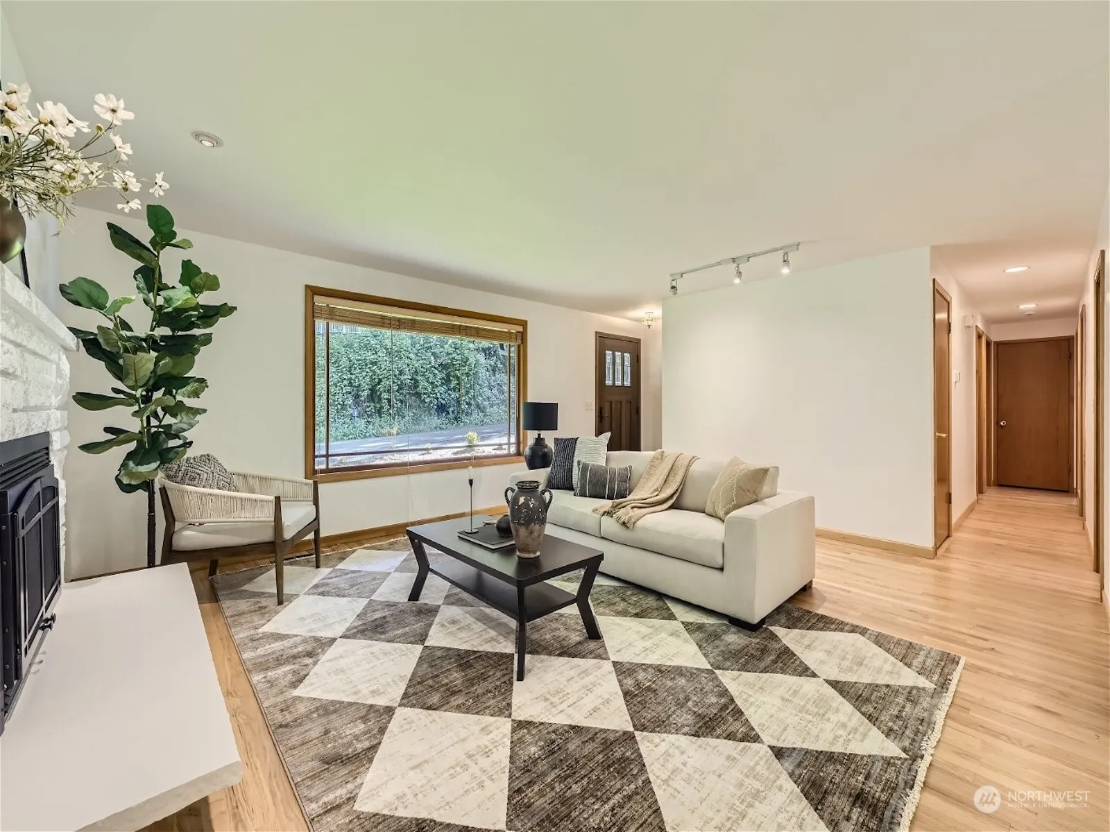 Welcome to your new home in a coveted Lake Forest Park. Newly refinished oak floors throughout the main level. There is a gas fireplace in the living room. A dining room opens to a deck overlooking the backyard w/ a stand alone office. 3 bedrooms on the main level including a primary bedroom w/ a bathroom & another full bathroom in the hallway. Downstairs features a mother in law apartment w/ a second kitchen, fireplace & a second primary bedroom w/ a walking closet. New interior paint, new landscaping, & a new driveway. House was connected to sewer in 2022. A heat pump was installed in 2023. Rubber composite roof (50 year warranty). Fully fenced backyard, Deeded Civic Club rights & proximity to schools & parks. Buyer to verify sqft.