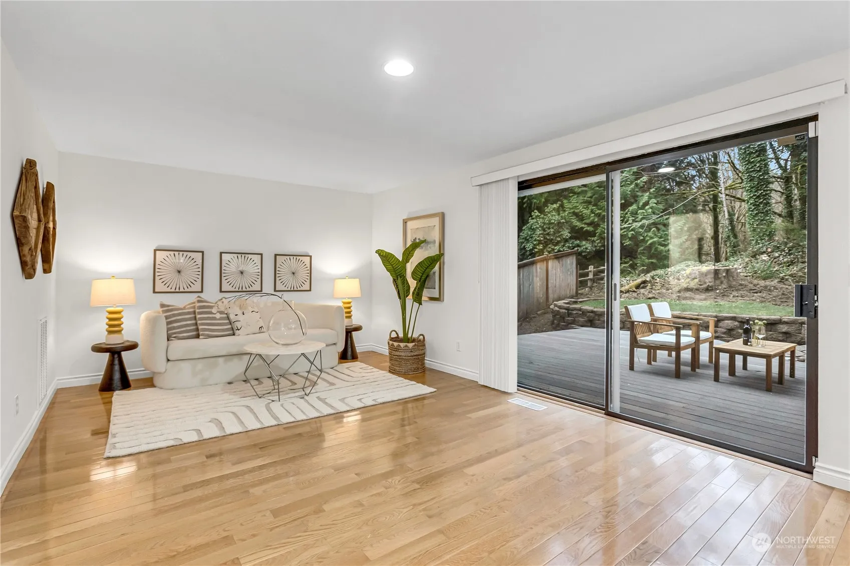 Amazing 3-bedroom residence boasting ample storage situated on a secluded lot adjacent to a lush greenbelt. Experience the grandeur of 14-foot soaring ceilings! Spacious deck perfect for entertaining and enjoying outdoor meals. Newly renovated, this charming dwelling exhibits updated bathroom vanities, brand new carpet, recently replaced appliances, an upgraded furnace, and a tastefully landscaped yard. Attached skylight den adds a touch of charm to the master bedroom. Issaquah Schools! Conveniently located with easy access to I-90, shops, and restaurants. Park and Ride just a short stroll away, with amenities and services in close proximity.