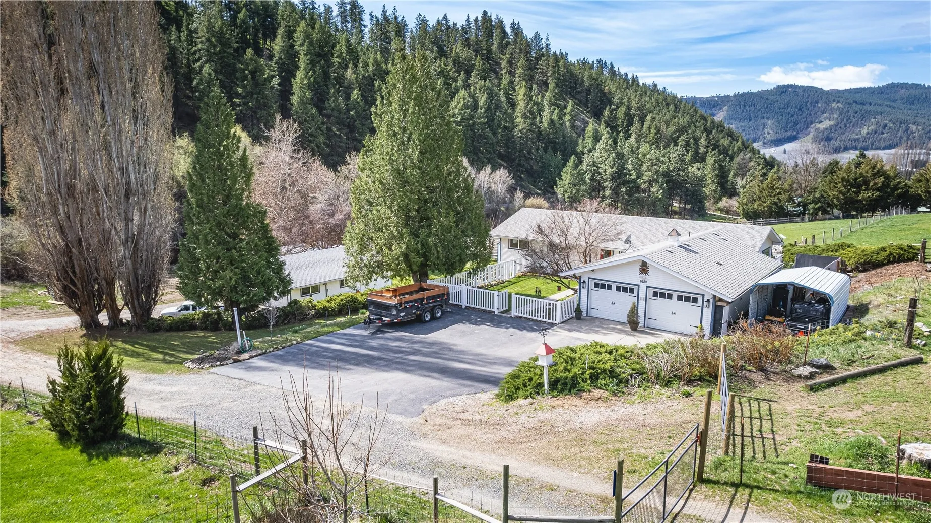 Discover this sprawling 5-acre parcel, with this updated daylight rambler, just 10 minutes from town! Enjoy watching the wildlife from within this welcoming home, while epitomizing rural tranquility. Embraces the southern exposure, ensuring abundant light throughout the day. With over 3800 square feet, 4 bedrooms, 2.75 baths, and office/hobby room it offers ample space for comfortable living. Enjoy the modern amenities inside while capturing the mountain views from various vantage points. Fenced and ready for your animal friends, irrigation water, and several out building for storage options. Cute separate one bedroom ADU (additional dwelling unit} helps generate extra income or provides other living options.