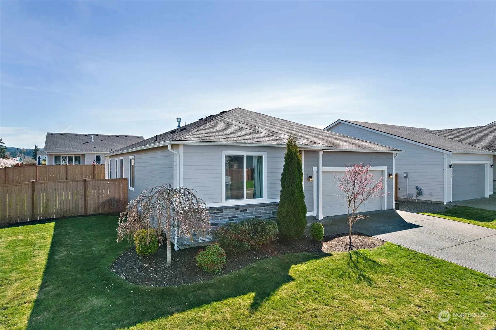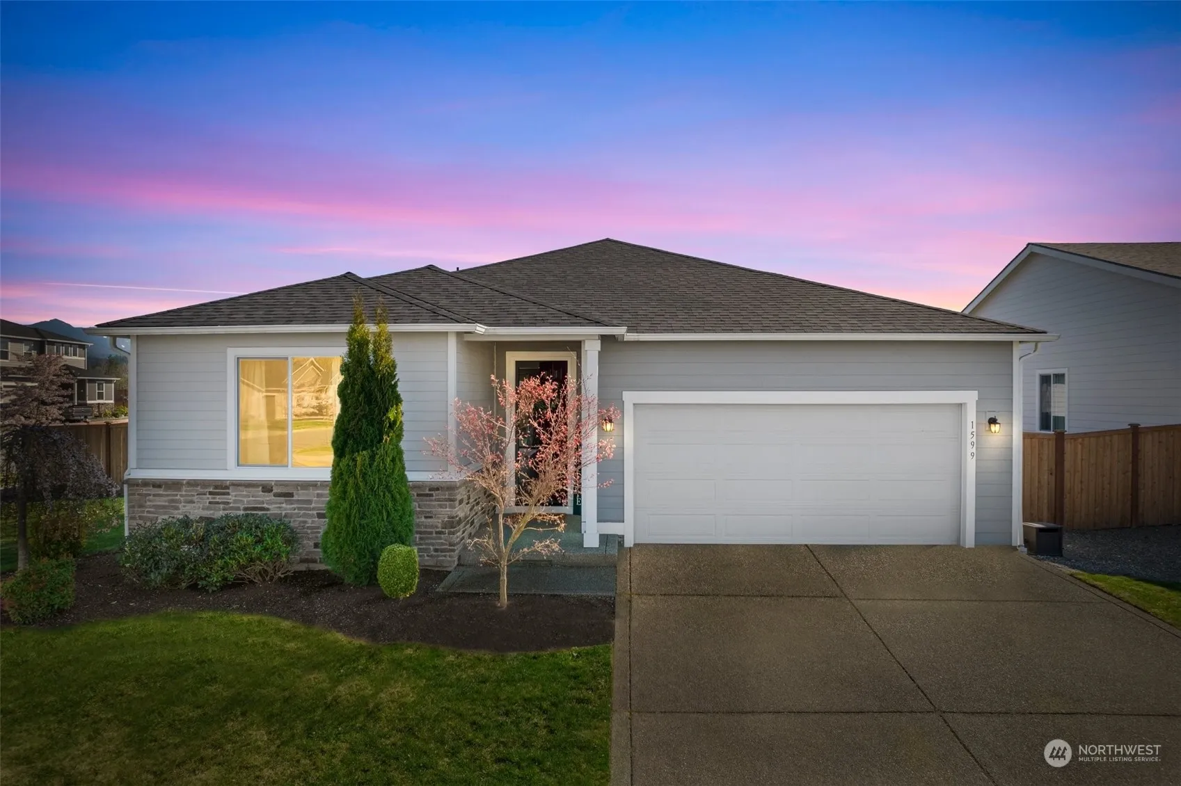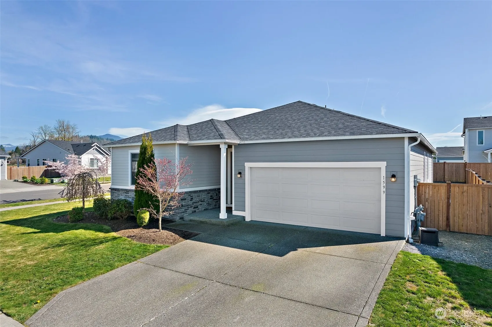 Desirable Alexandrite floor plan from Richmond American. This 1-story home boasts 3 bdrms, 1.75 baths plus extra finished room/opt 4th bdrm/Office space. This home exudes sophistication w/its modern design & beautiful finishes. Luxurious vinyl plank floors that lead you through an open floor plan, ideal for entertaining guests. The spacious kitchen is a chef’s dream featuring quartz countertops, SS app & Lg center island w/seating that integrates into the the living space w/upgraded gas fireplace & beauty of the outdoors. Primary Suite is adjacent & includes walk-in closet & private bath. Situated on a Lg fully fenced corner lot, you will enjoy a spectacular Mt Rainer view for summertime gatherings. Close to town, parks & shopping!