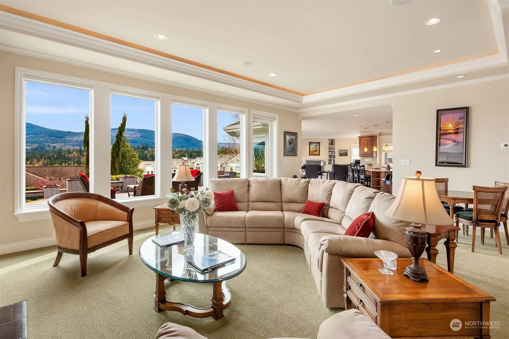 Spectacular views of Mount Si and the Snoqualmie Valley, this custom one-story rambler is located in the gated community of Eagle Nest. A golf course home on a private 1/2 acre lot above the 14th fairway, Club at Snoqualmie. Great room with full kitchen nook and separate formal dining area. The kitchen with large center island, butler and walk-in pantries, and large outdoor deck are perfect for entertaining. Three plus bedrooms include primary suite with gas fireplace and 5 piece bathroom. Office, kitchen work areas, 1 1/2 baths, and laundry finish off the floor plan. Oversized 2 car garage. Separate shop with 1/2 bath and storage area on the lower level. Radiant heating, tankless water heater, whole house generator. A must see property.