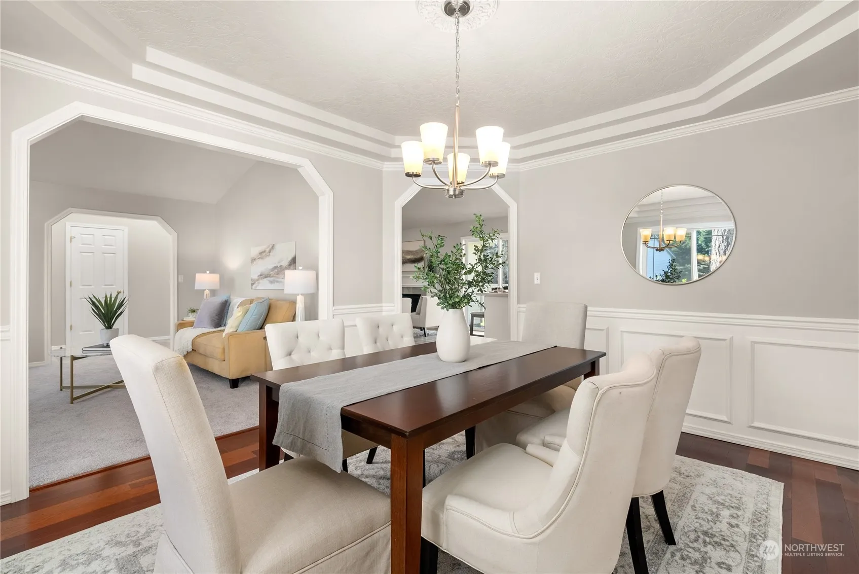 Super easy living in this 3BR 2 full ba one-level home on almost ¼ acre lot in the desirable Campus Park neighborhood. Great floor plan w/formal & informal living areas, dining room w/wainscoting & coffered ceilings. Informal living off the kitchen w/warm & inviting gas fp. Primary bedroom w/walk in closet & 5-piece bath w/soaking tub. NEW roof & fresh interior paint, new light fixtures & stainless kitchen appliances. Hardi plank siding. Hard to find, finished 3-car garage & an idyllic quiet cul de sac location. Private backyard is fully fenced. Conveniently located near trails, beaches, golf, Nisqually Wildlife Refuge, shopping, parks, JBLM & I-5. What a great place to call home!