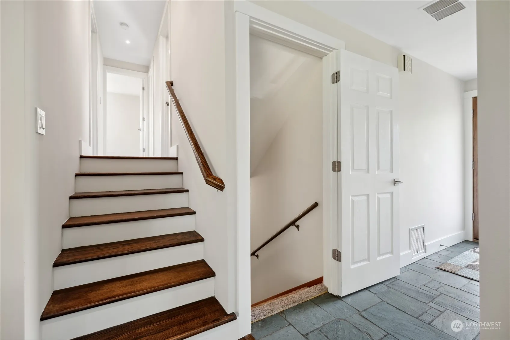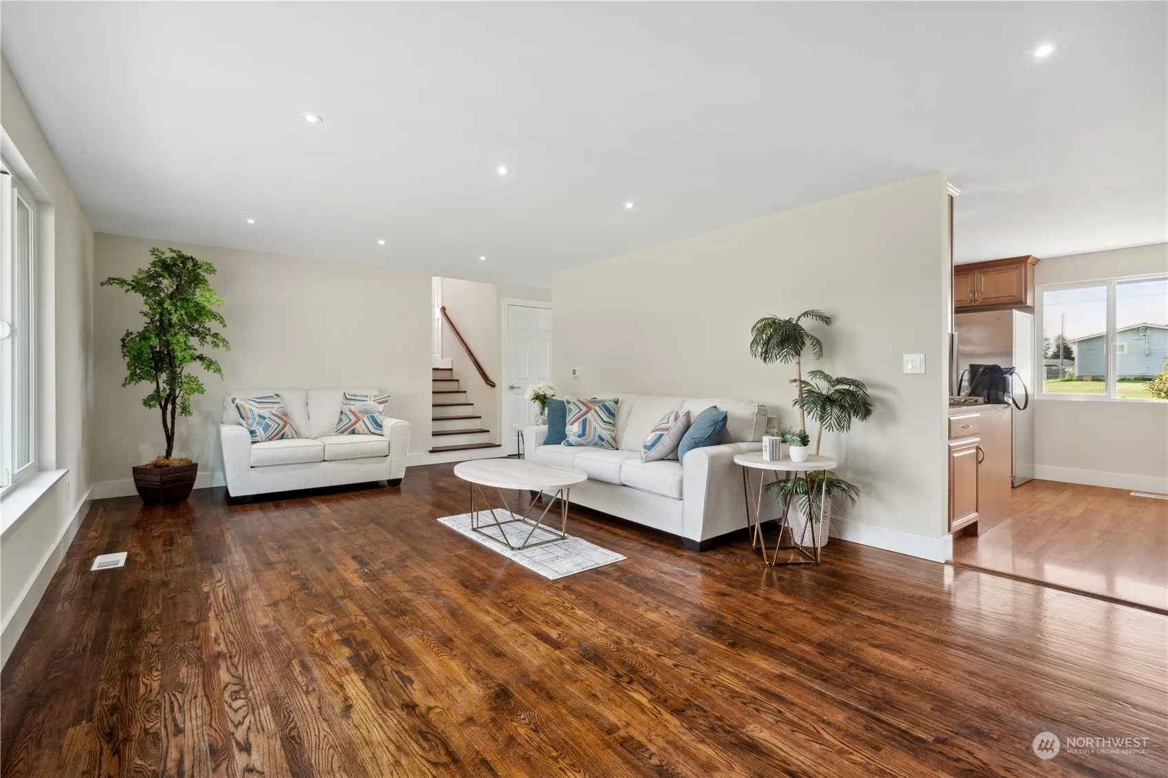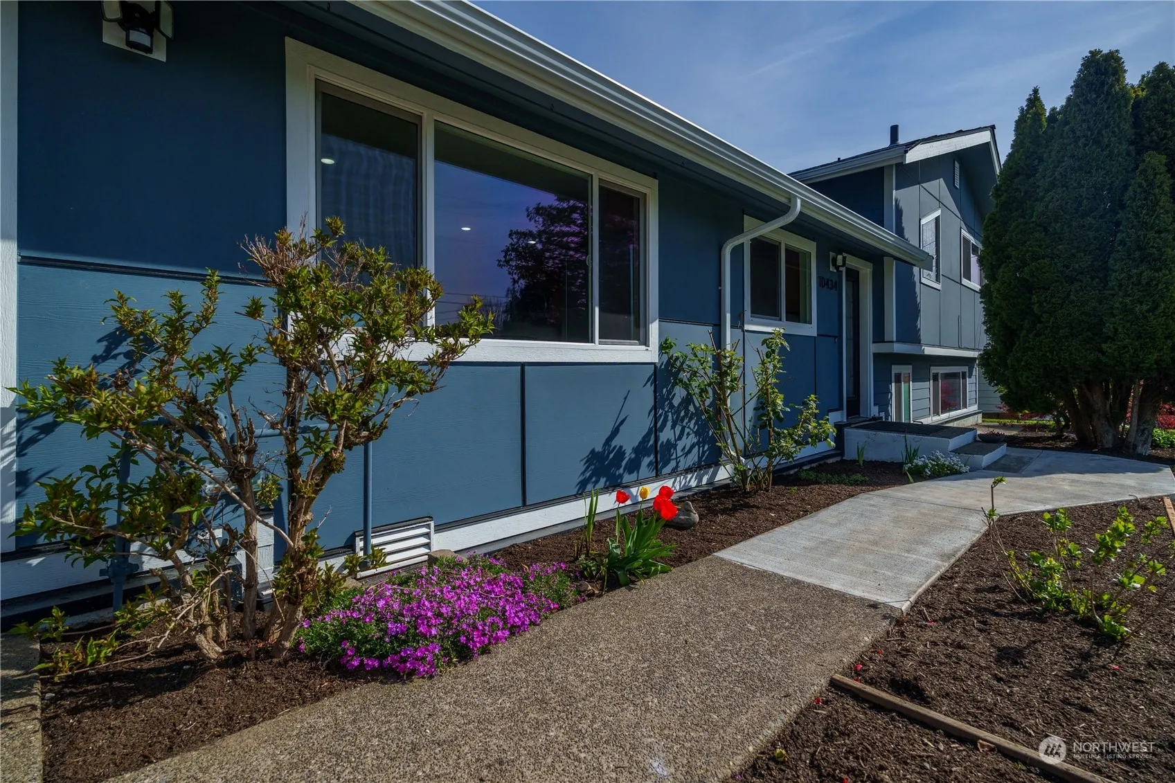 Beautifully landscaped level yard w/newer sod front & back, garden beds & gated garden spaces. The exterior has been resided & has a newer roof. Swing the door open & discover slate floor entry, hardwood floors, carpeted areas downstairs. Large kitchen w/tons of storage & counter space. The interior is freshly painted w/ new baseboard trim, large bedrooms all w/new closet doors, bathroom offers jacuzzi jetted tub w/ artist designed stain glass window that offers privacy & beautiful lighting thru the glass. Large additional living space & office/bonus room downstairs w/ a private entrance. New interior lighting thru out the home. Gas fireplace in living room w/large window w/beautiful view of backyard & gardens.