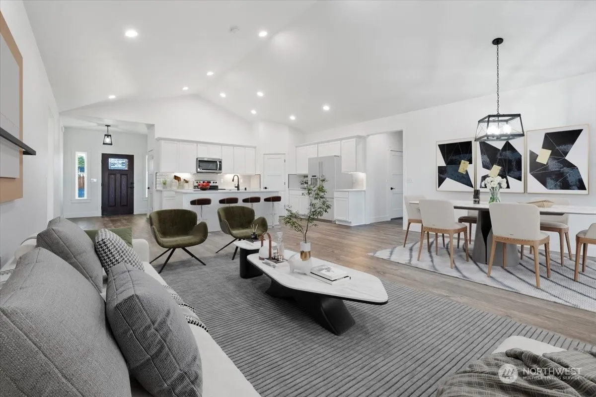 New custom-Built home on 1.16 acres in Mae Valley. Plenty of room for a shop!! Across the street from the lake, near boat launches and golf courses. In close proximity to I-90 for an easy commute. Home is 1964 sq ft with 3 bedrooms+ a den, 2 baths. Split floor design, open concept. Exterior features, rock accents and timed underground sprinklers with landscaping in front yard. Inside features LVP flooring, vaulted ceilings, soft close cabinets with quartz countertops, under cabinet lighting, luxurious en-suite primary bath, spacious bedrooms and closets. Don’t let this one get away! Some pictures include virtual staging.