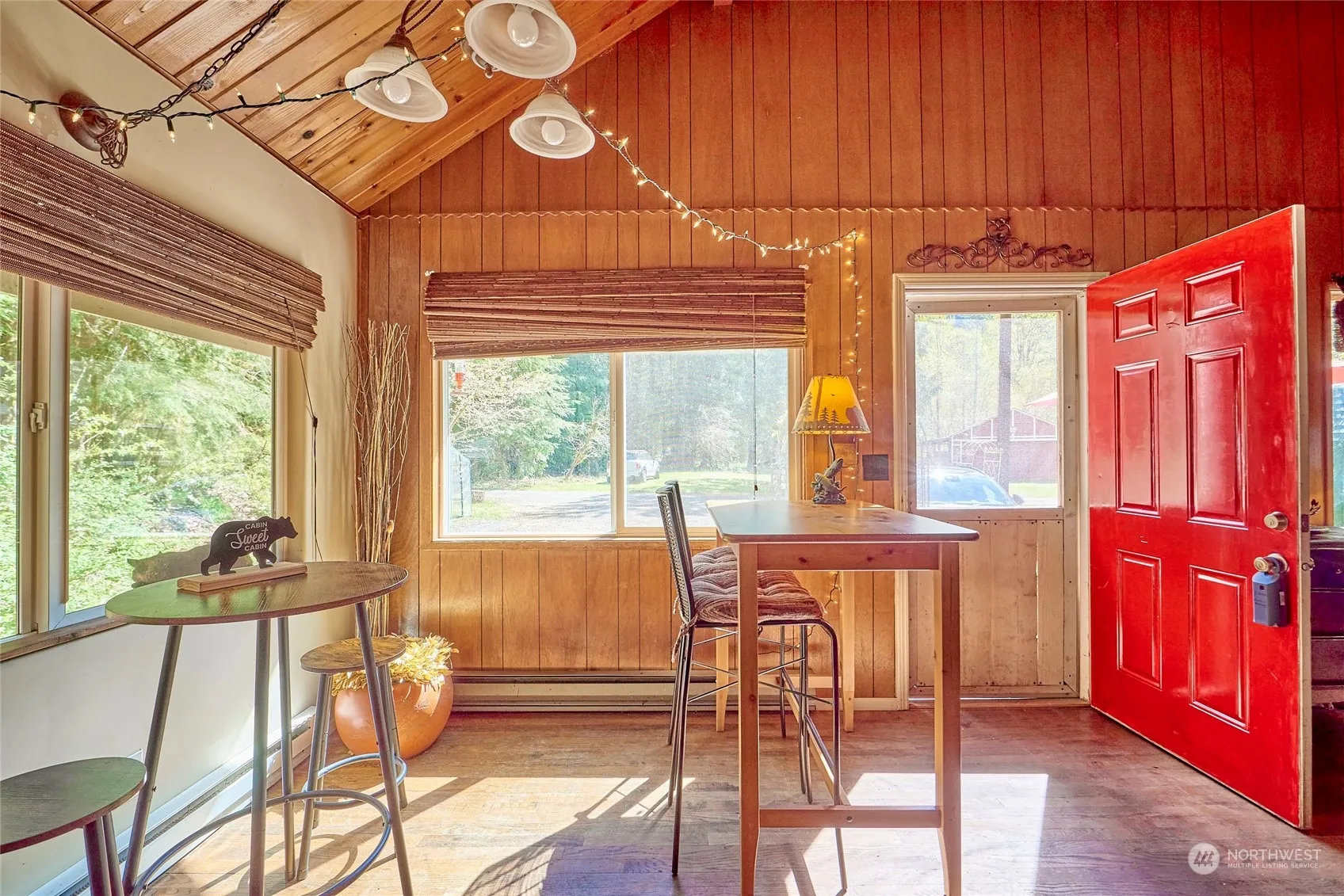 Indulge in the tranquility of this charming 700 sq ft Pinterest-style cabin, situated at the base of the North Cascade Mountains. Immerse yourself in nature’s beauty with the picturesque Sauk River flowing just beyond your backyard, offering a serene backdrop to your adventures. After a day of recreational activities, cuddle up by the cozy wood stove or unwind in the inviting loft above. This oasis is conveniently located just a mile from town, providing access to amenities while maintaining a sense of seclusion. Whether you’re seeking a personal escape or considering the opportunities of an Airbnb, this home offers the perfect blend of rustic and modern. Two car garage with mechanics pit, workbench, & carport for storage. 6 parcels total.