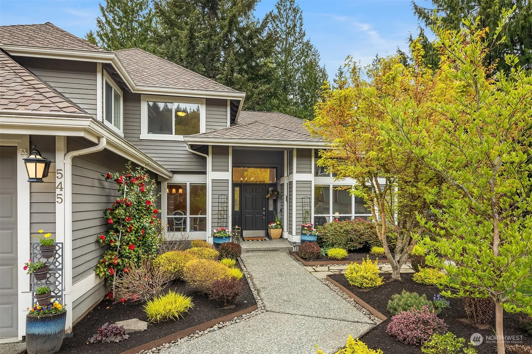 Amazing layout features main floor primary suite w/ luxurious bath including expansive shower & Jacuzzi tub. Designed for convenience & entertaining, the kitchen appliances where thoughtfully laid out to make cooking a breeze, especially during the holidays when the double ovens are in full use & the formal dining room is set for hosting dinners parties up to 10. Upstairs includes 3 secondary bedrooms, full bath & large bonus that offers another great place to entertain. Bask in the beautifully designed gardens surrounding the property topped w/ a serene Koi pond, covered patio & sun-drenched deck. Enjoy the peacefulness of a quiet cul-de-sac yet drop down the hill & find everything you need – groceries, great restaurants, Costco, & more!