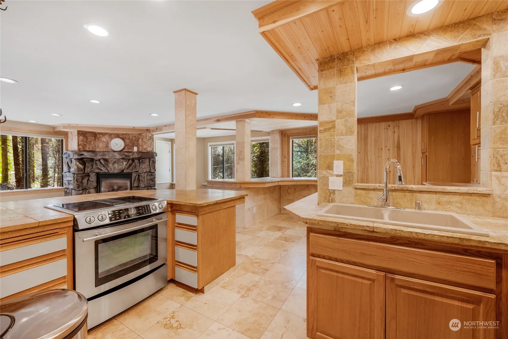 Incredible setting offering total privacy in sought-after Horizon View! This charming home exudes a mountain retreat vibe while conveniently close to amenities. Featuring a luminous open kitchen with a gas fireplace, seamlessly flowing into a spacious great room. Enjoy a spacioius eating bar and expansive dining area. Basement boasts a sizable bonus room, convertible to a 4th bedroom. Primary bath adorned with tile, and a beautifully crafted shower. Vaulted ceilings illuminate the space. Owner has plans and structural design completed for a large addition with plans available. Situated on a nearly 12000 sq ft lot with a low-maintenance yard to enjoy year round.