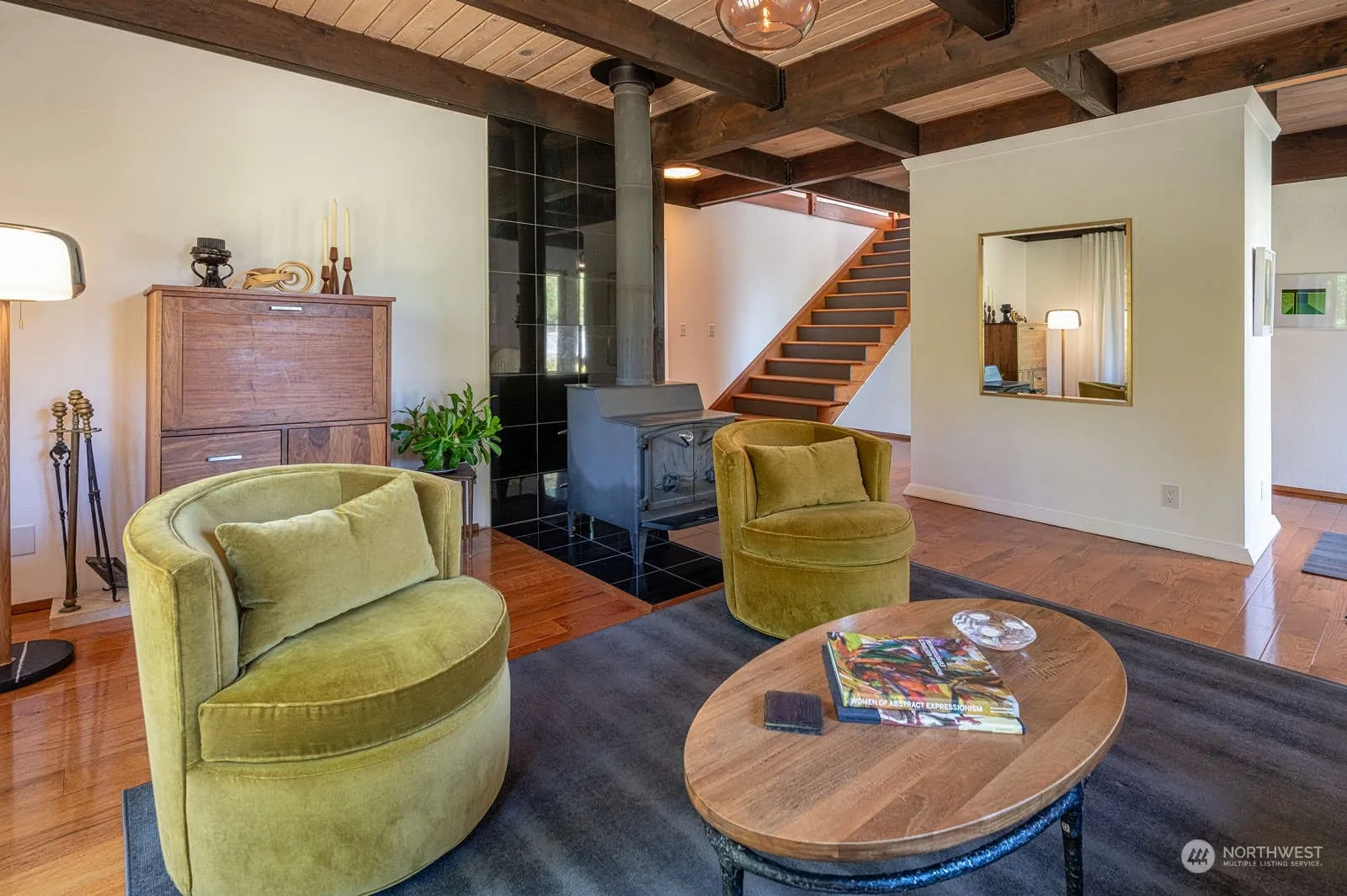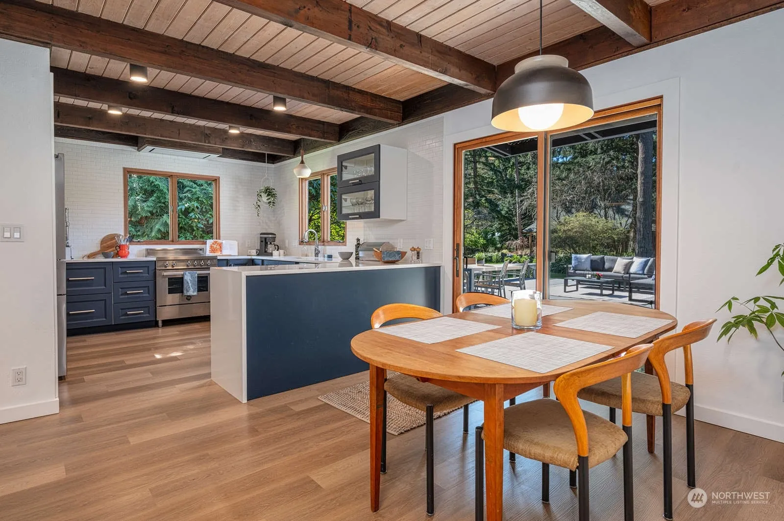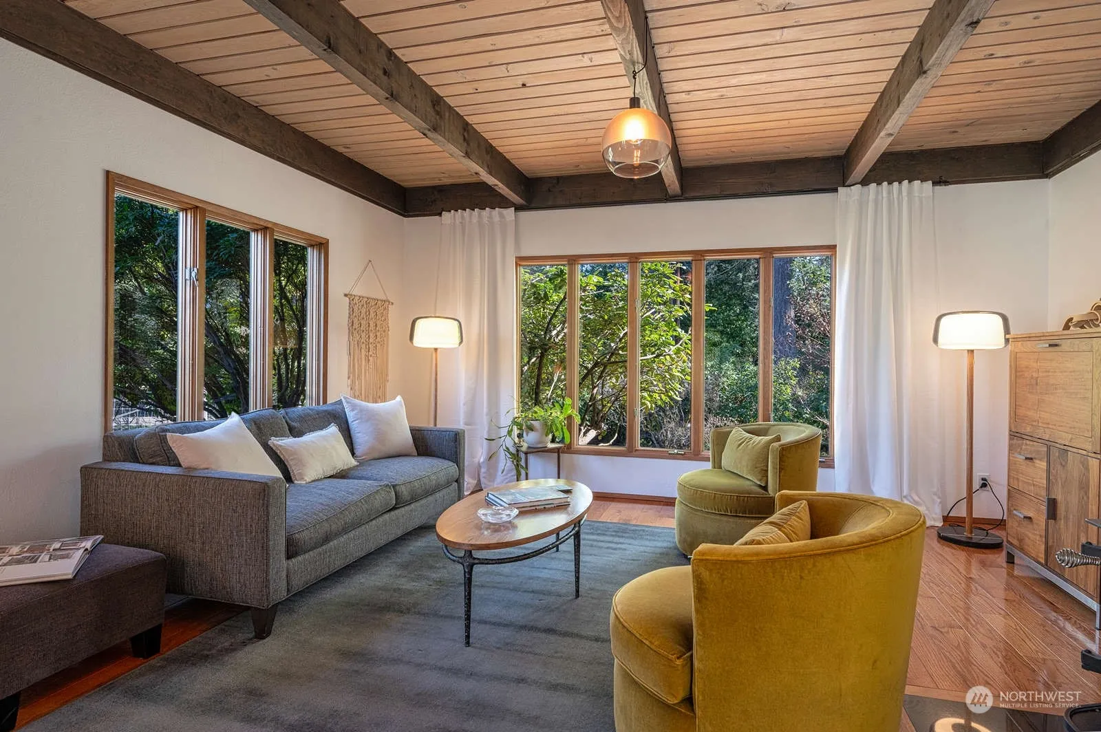 Experience the perfect blend of beauty, functionality & convenience in this impeccable Vashon home. 2380 sq ft/3 BD/3 BA home offers a mix of mid-century & modern influences; 9-ft beamed ceilings, spacious living areas, a dream kitchen & elegant trims plus the main floor features a private en-suite guestroom. Attention has been paid to every detail in this turn key home. Enjoy the seamless flow between indoor & outdoor spaces perfect for relaxing/entertaining including a large deck, hot tub & picnic kitchen area all on two lots in a park-like setting with stunning, mature foliage. An office with a view & your very own private art studio add to this property’s charm. Proximity to the ferry for seamless Seattle access. A unique find.