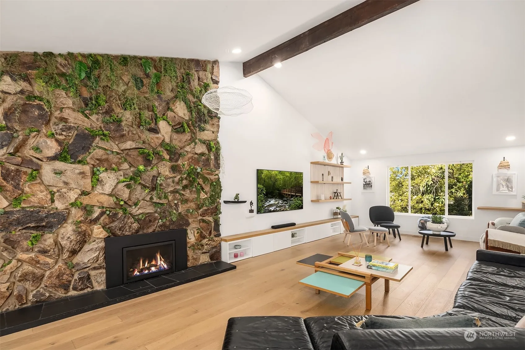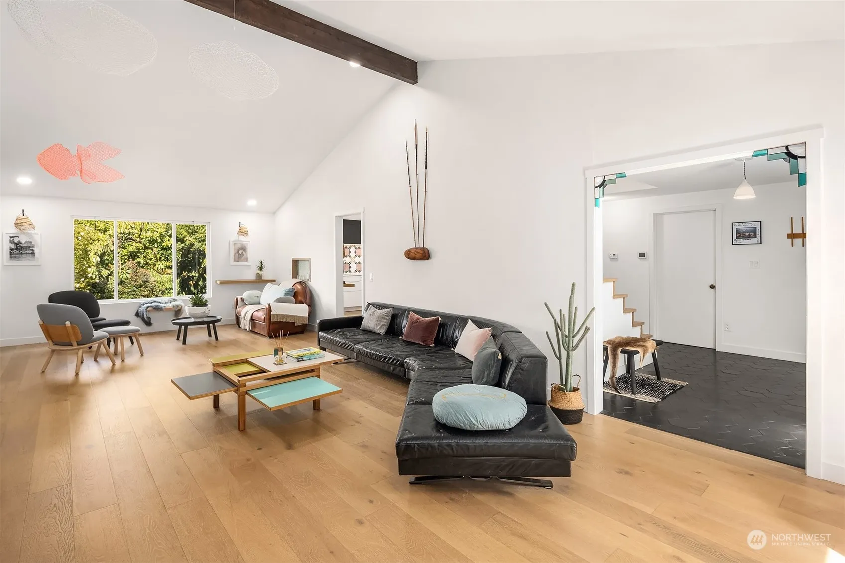 Nestled in the heart of the cherished Groveland Beach community, this stylishly renovated home blends artistic flair with modern luxury. Beautifully reimagined with white oak floors, French and Moroccan lighting and exquisite handcrafted tile. Vaulted ceilings and chic details create a bright and playful ambiance. The fun kitchen features top-of-the-line appliances and a spacious island for entertaining and seamlessly connects to the expansive outdoor deck for alfresco dining and entertaining. Upstairs, the primary suite offers a serene spa-like retreat of sanctuary and relaxation. The true gem of this property lies in its coveted location near Groveland Beach Park, perfect for dipping your toes in the lake and enjoying an outdoor picnic.