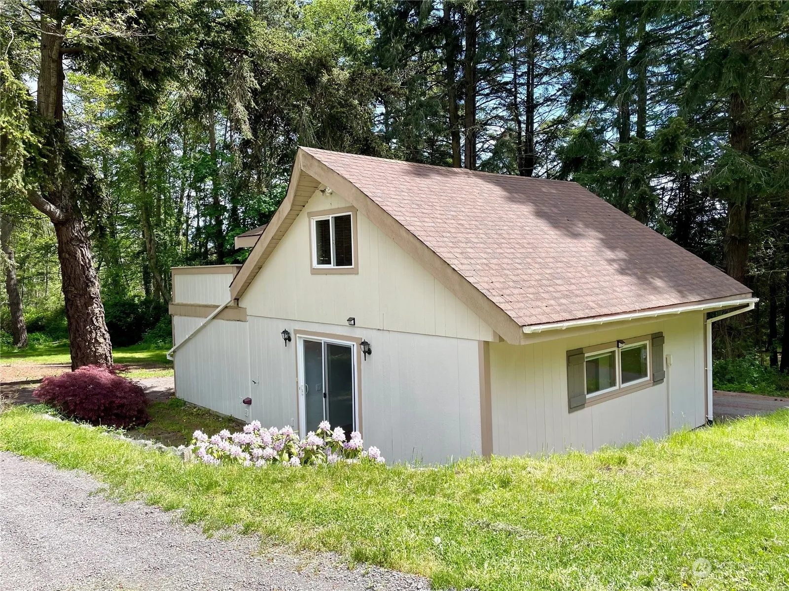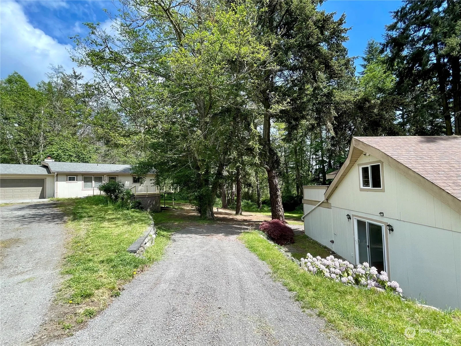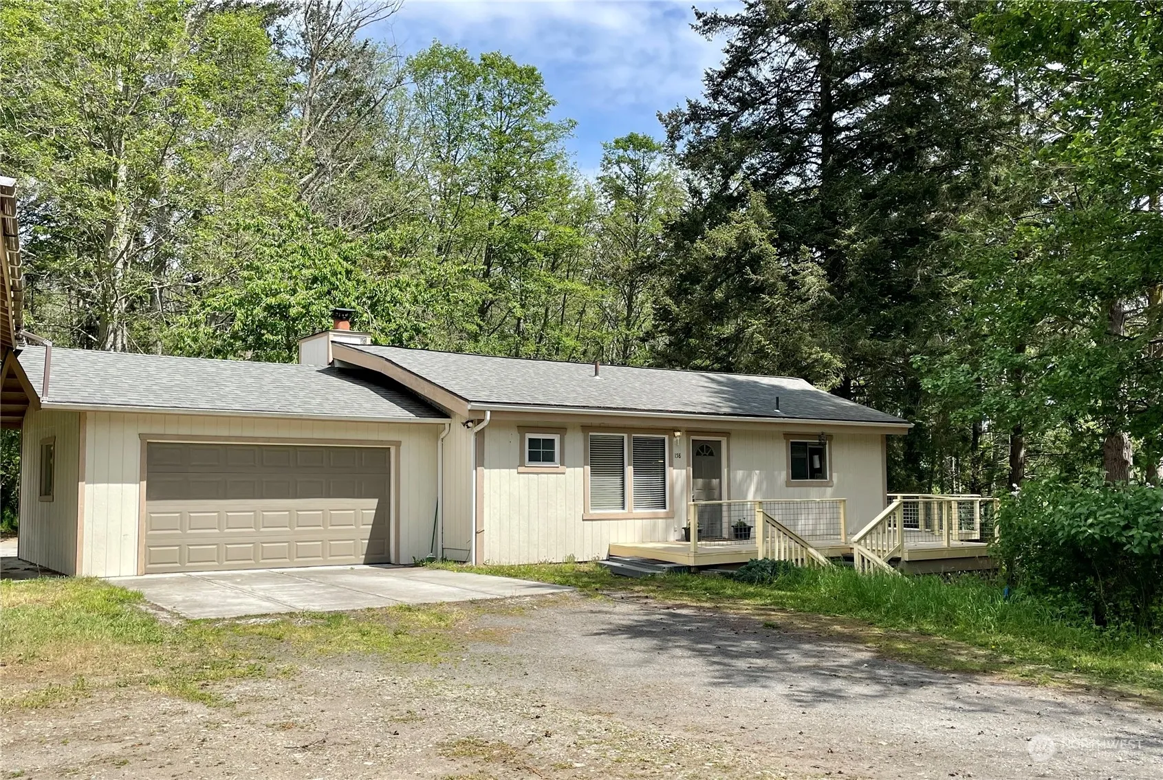 Lovely island style home in desirable Hillview Terrace neighborhood, close to town, ferry and shopping, but away from the bustle! 3 bedrooms, 1 3/4 bath, 1725 + SF main house. Separate 850 SF + studio/office with full bath, loft. Multiple garages for cars, boats, shop space. Are you a boater? Covered boat/RV storage! This great property offers many possibilities! Over 1.4 beautiful wooded acres in park-like setting. Main house offers hardwood floors, vaulted ceilings, amazing great room, beautiful wood paneling, huge wrap around decks, woodstove insert, new kitchen stove. Large yard with ample room to play or plant a garden. By appt.