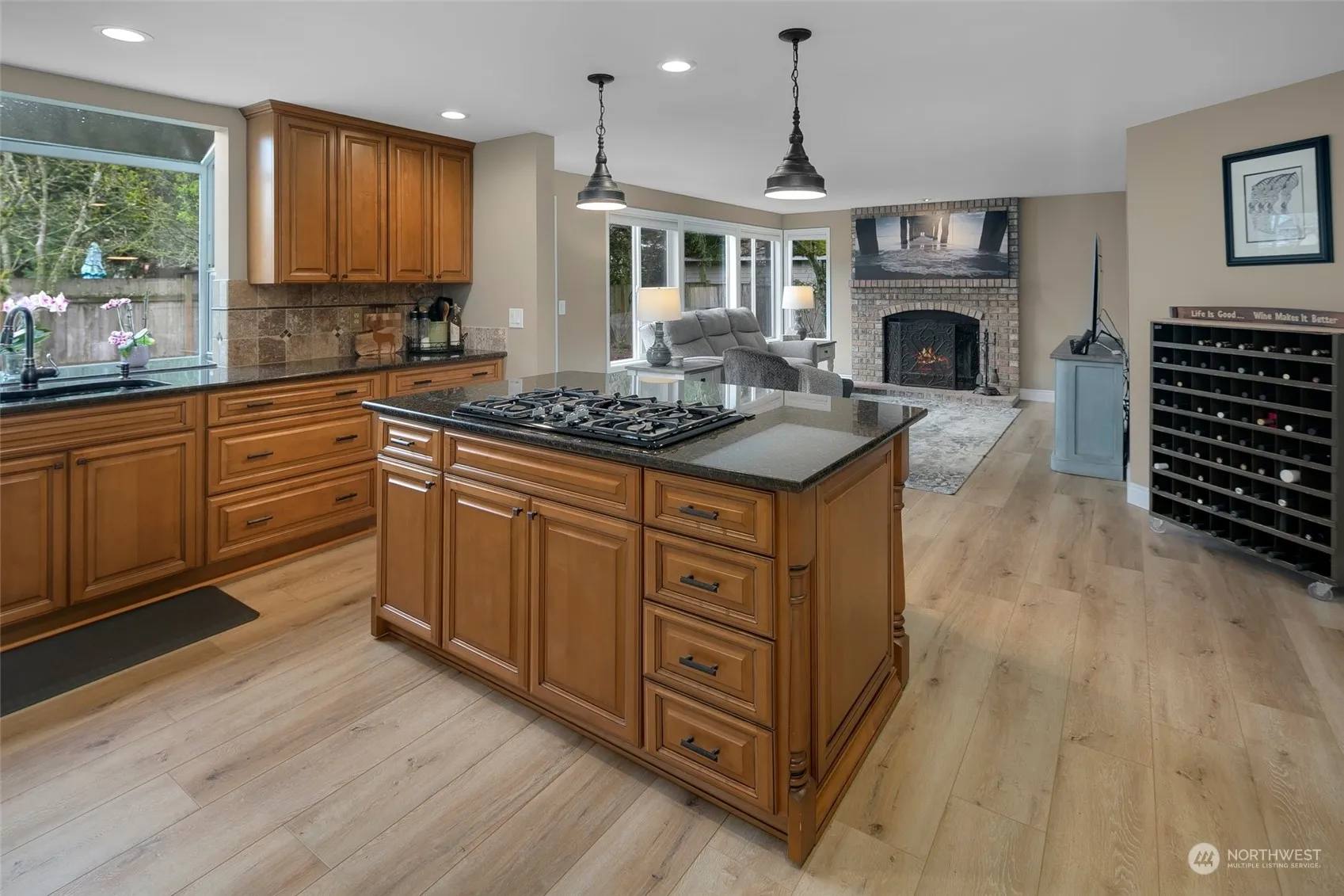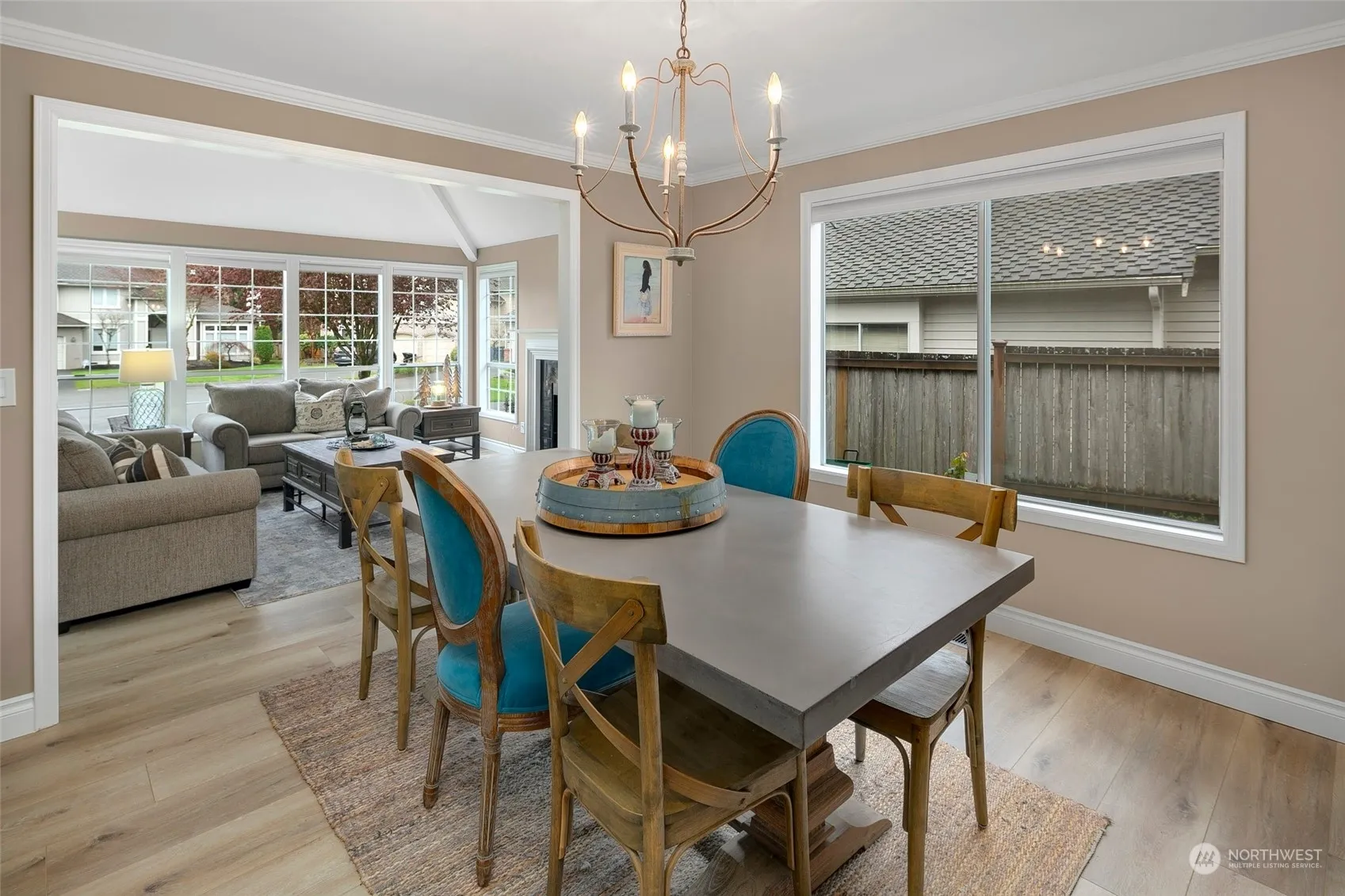 Updated and move in ready! Formal entry, tons of natural light, living/dining rms w/vaulted ceilings, new Stone Polymer Composite flooring throughout. Chef’s delight kitchen w/garden window, slab granite countertops, full height backsplash, furniture grade cabinets, island, bar seating, 2 pantries + extended baking center off attached casual dining. Upper level primary suite w/vaulted ceilings, 2 walk in closets, cathedral window + completely remodeled spa-like bath w/quartz ctops, fixtures, vanity & flrs. 3 more guest bedrooms, hallway and updated full guest bath also with SPC floors. Fenced backyard w/extended stamped concrete patio, lawn & walkways is perfect for entertaining. 3 car attached garage, NO HOA and all appliances included.