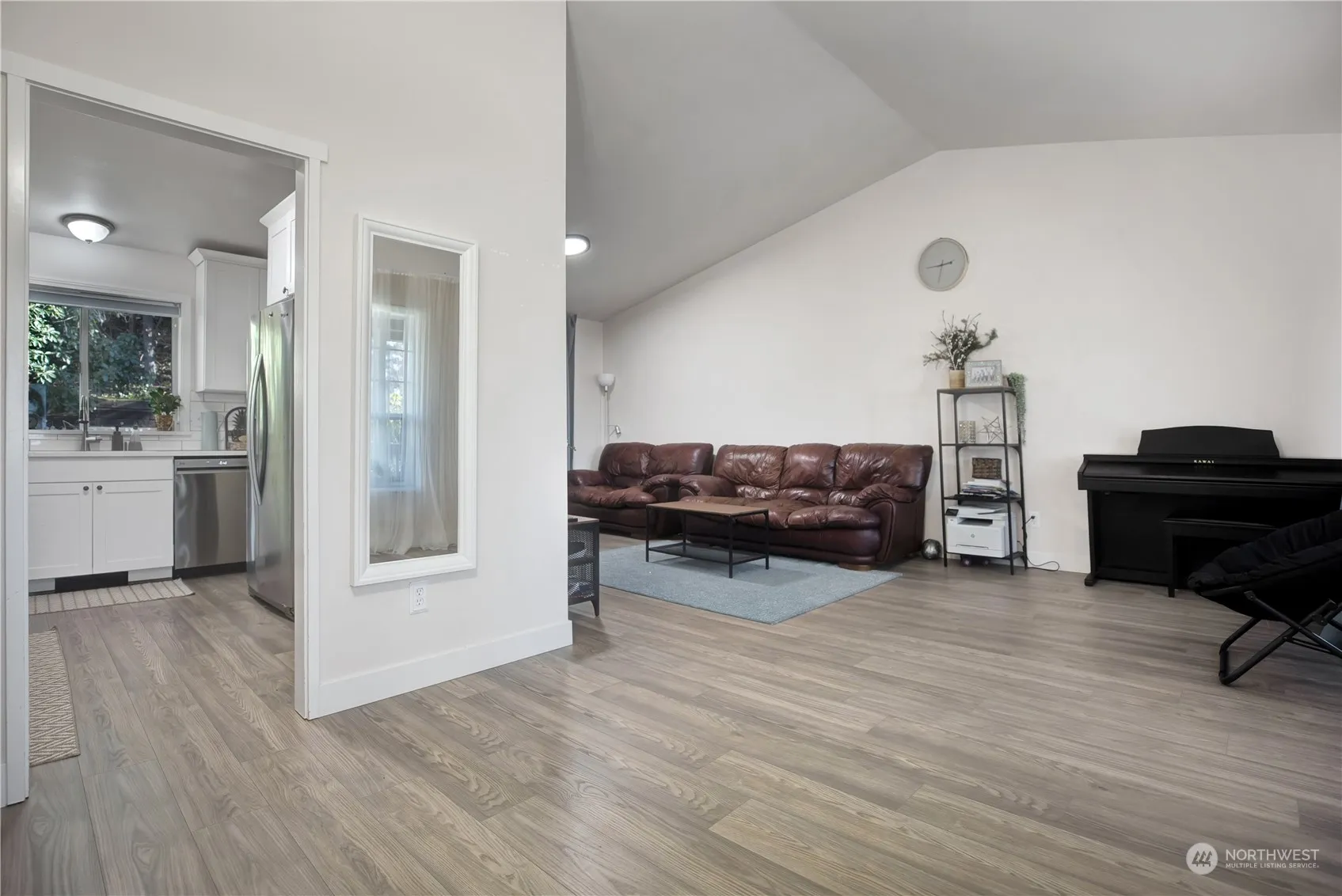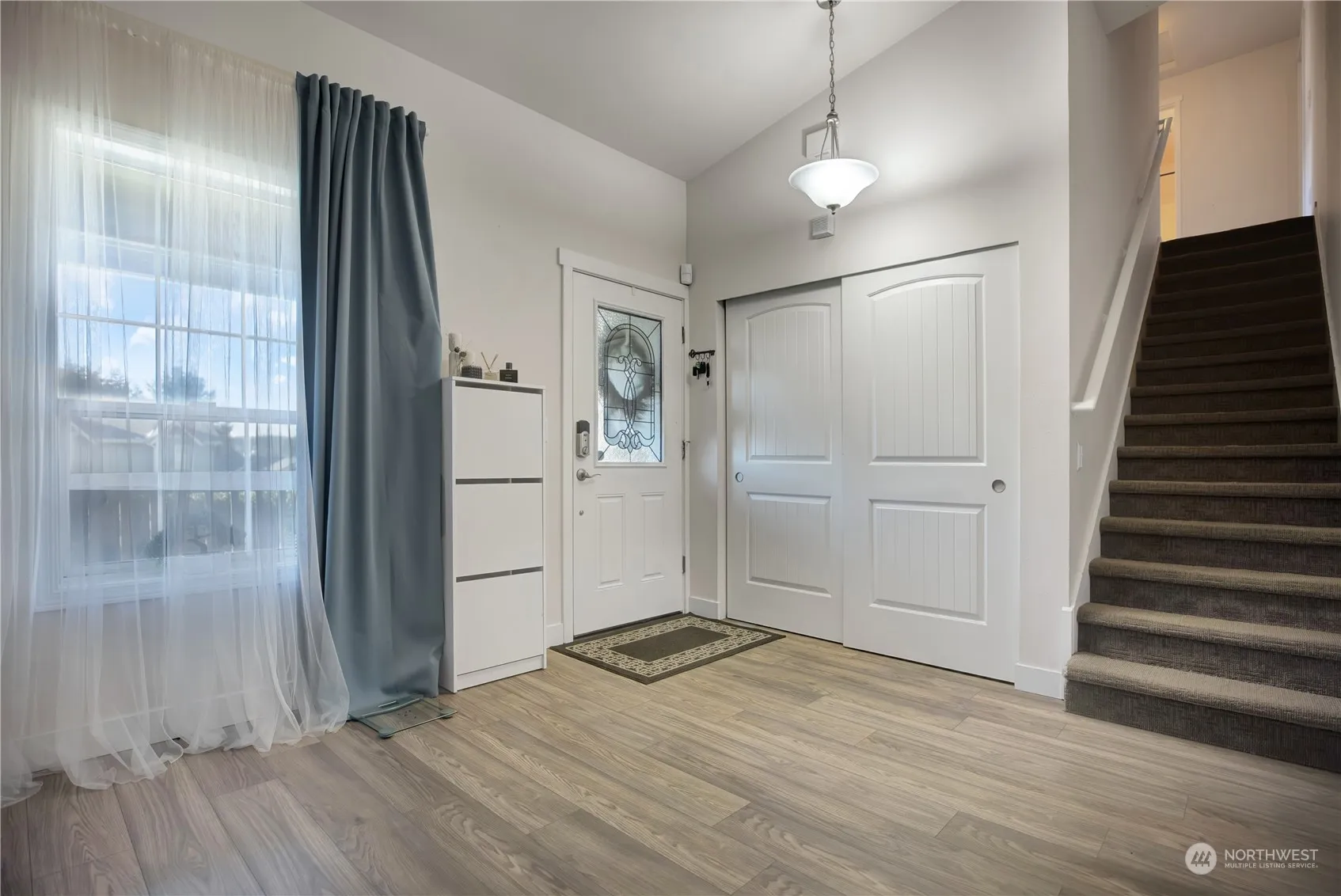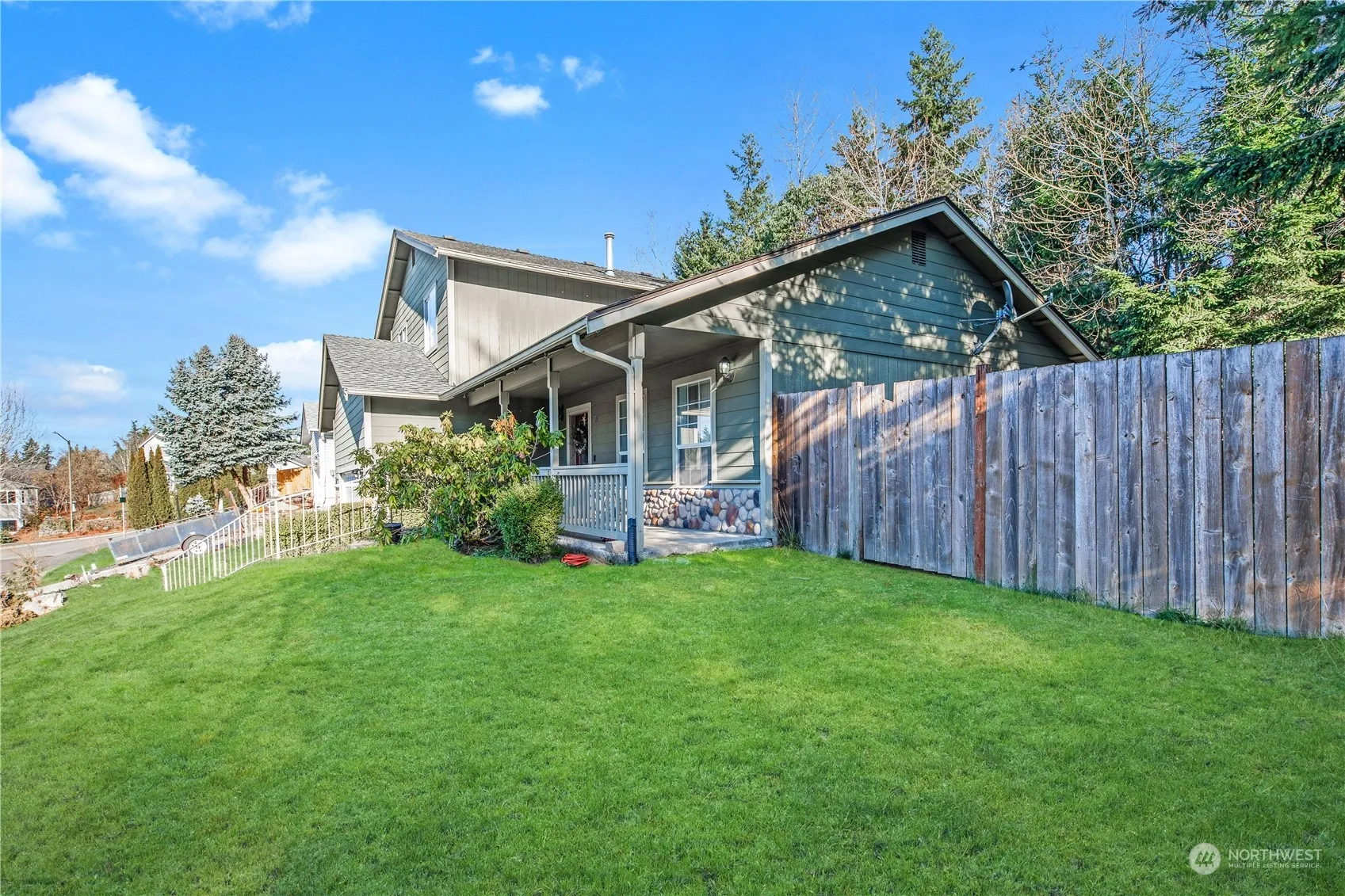 Beautiful home located in a quiet cul-de-sac. Walk into an open living room w/ vaulted ceilings & updated laminate floors all throughout living room & kitchen. Enjoy a kitchen w/ updated countertops, backsplash, cabinets & stainless steel appliances. Utilize the island/bar area that opens into the family room w/ a fireplace to entertain guests or create memories. Access the spacious 2 car garage or make your way out to a private backyard through the family room. Utility room contains half bath and a locking doggy door which leads out to a fenced dog run for your furry friends. 3 bedrooms upstairs, both bathrooms with updated tile floors and an updated tile shower and sink area in the master.