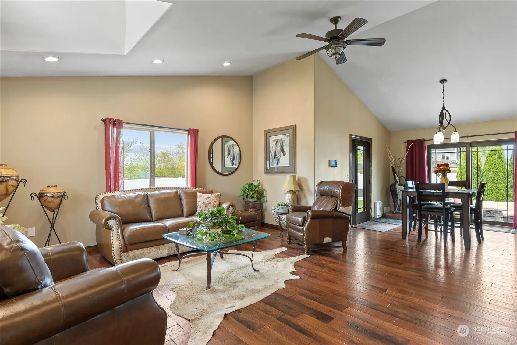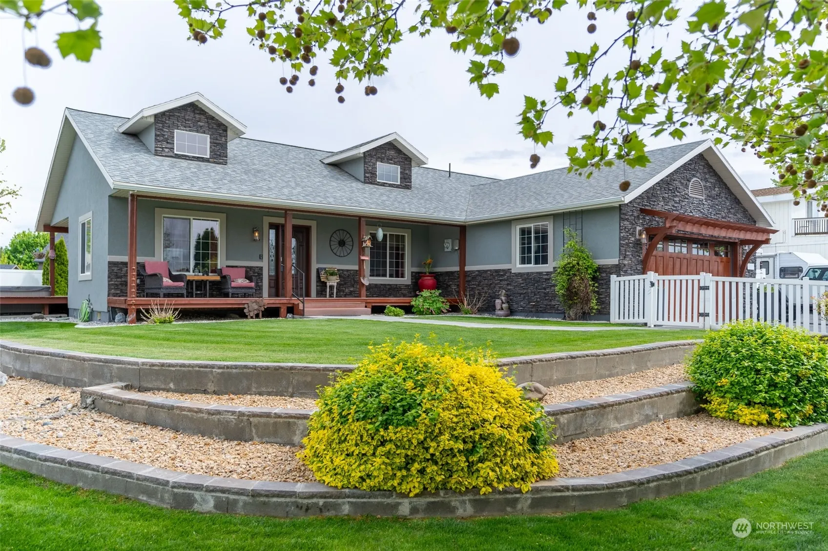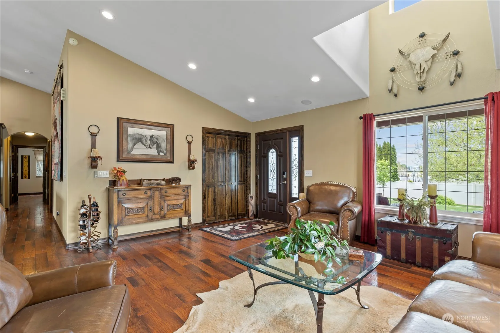 Indulge in the elegance of this 3 bed 2 bath private rambler residence featuring high end finishes. From granite countertops, unique cabinetry, vaulted ceilings, skylights, primary bedroom has a luxury suite with a bear claw copper tub,custom tile shower. This home complemented by a serene outdoor retreat showcasing RV setup, koi pond & endless possibilities Garage completely insulated, heated & finished. Interior Floor sealed/painted. Additional amenities include HVAC 2 yrs old w warranty, clean air system, Culling soft water system, Hot water on demand system, Utility barn has power with extra storage, Koi pond has 2 separate filter systems, Thermostat controller fan in attic space over garage, Rv cover with 30 amp service w/water.