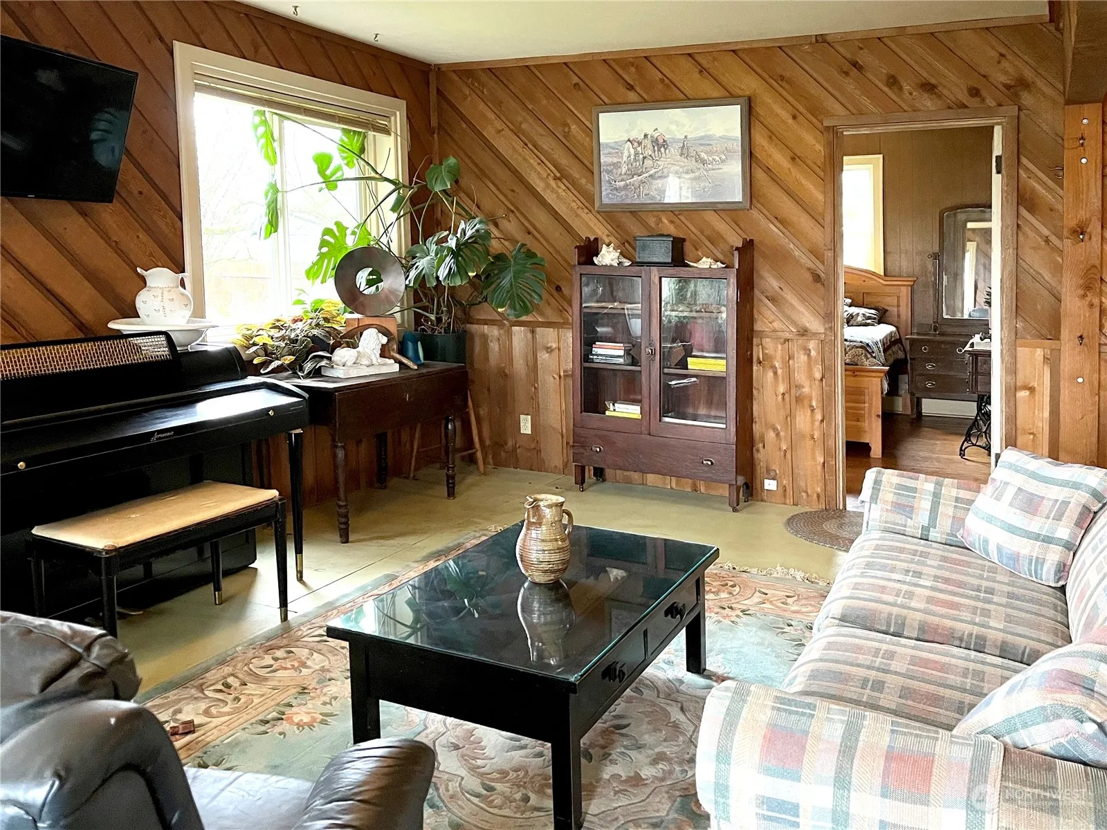 Knotty-pine interior walls, throughout this sweet cabin, full of historic charm, and cute wrap around front porch. What more could you ask? Built 1896, on a huge (.47 acre) ‘double’ lot. Park-like surroundings, cultivated over 20 years by a “green-thumb” gardener and sculptor. New roof in 2017. Just needs your personal touch to update and make it shine again. Easy access to the restaurants and services of the friendly community of Nooksack/Everson