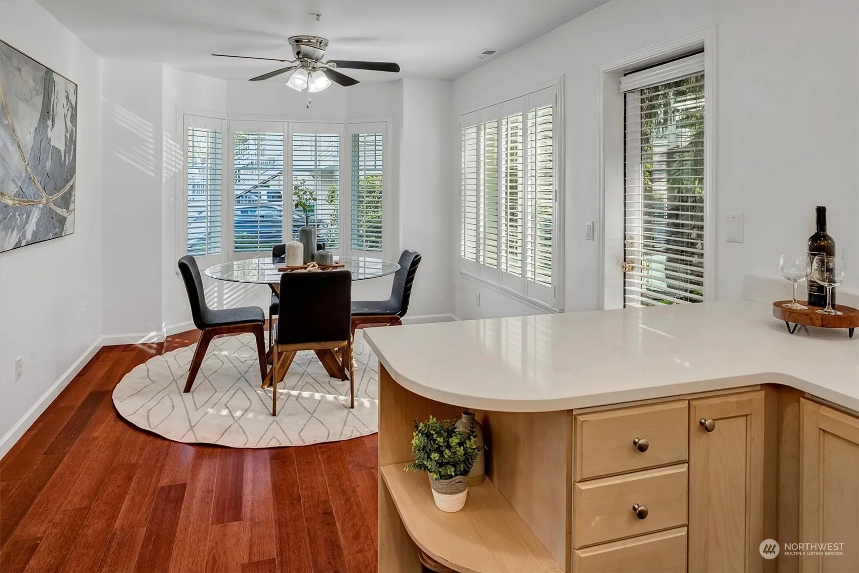 Enhance your lifestyle in this newly updated end-unit townhome, boasting an attached two-car garage. The upper floor presents a luxurious primary suite alongside two additional rooms, which offer the spacious feel of a three-bedroom home. Soaring vaulted ceilings, an en-suite bath, utility area & another full bathroom enrich the top level. Defined entry opens to a uniquely large living space with gas fireplace & 1/2 bath. The kitchen is a chef’s dream, featuring new quartz countertops, stainless steel appliances, elegant plantation shutters, and a back door that opens to a private outdoor entertainment area embraced by natural beauty. Storage galore, EV Charging outlet in place. Unbeatable location & prestigious Issaquah school district.