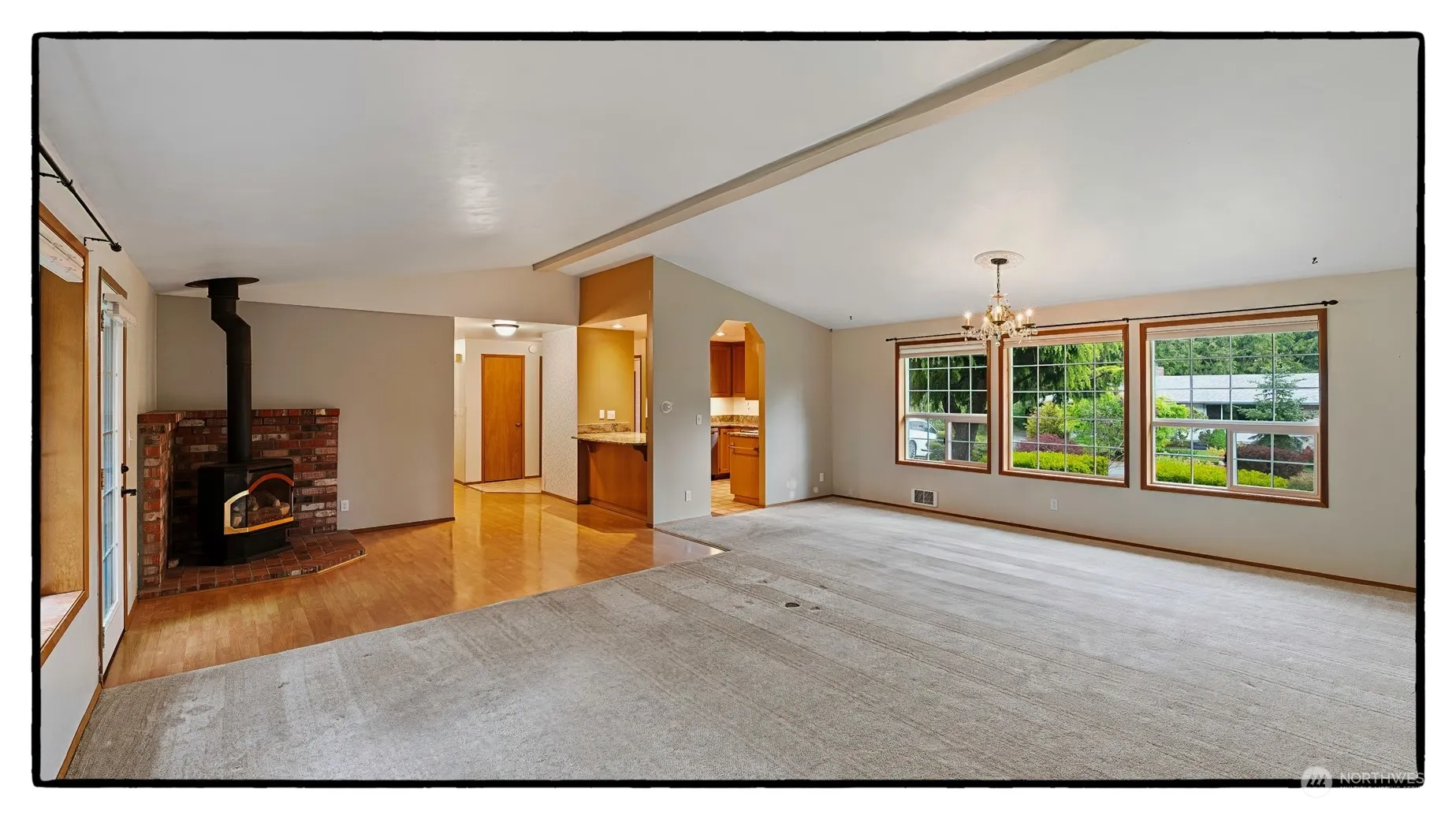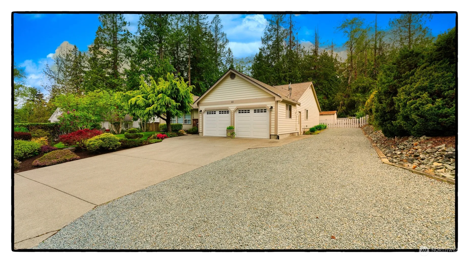 Rare opportunity to own a FEE SIMPLE (no lease) custom-built rambler, boasting a great room concept. Step into a haven of tranquility with mature, landscaping, and enjoy a park-like ambiance, with a greenbelt backdrop and privacy offered by the fenced backyard. A deck and pergola offer a serene retreat where you can unwind and entertain. Home offers a free standing fireplace perfect for those crisp chilly days. Enjoy the PNW lifestyle with community activities such as golf, tennis courts, and a club house, providing endless opportunities for recreation and socializing. Explore the beauty of two private beaches and take advantage of the free boat ramp, enhancing your waterfront living experience.