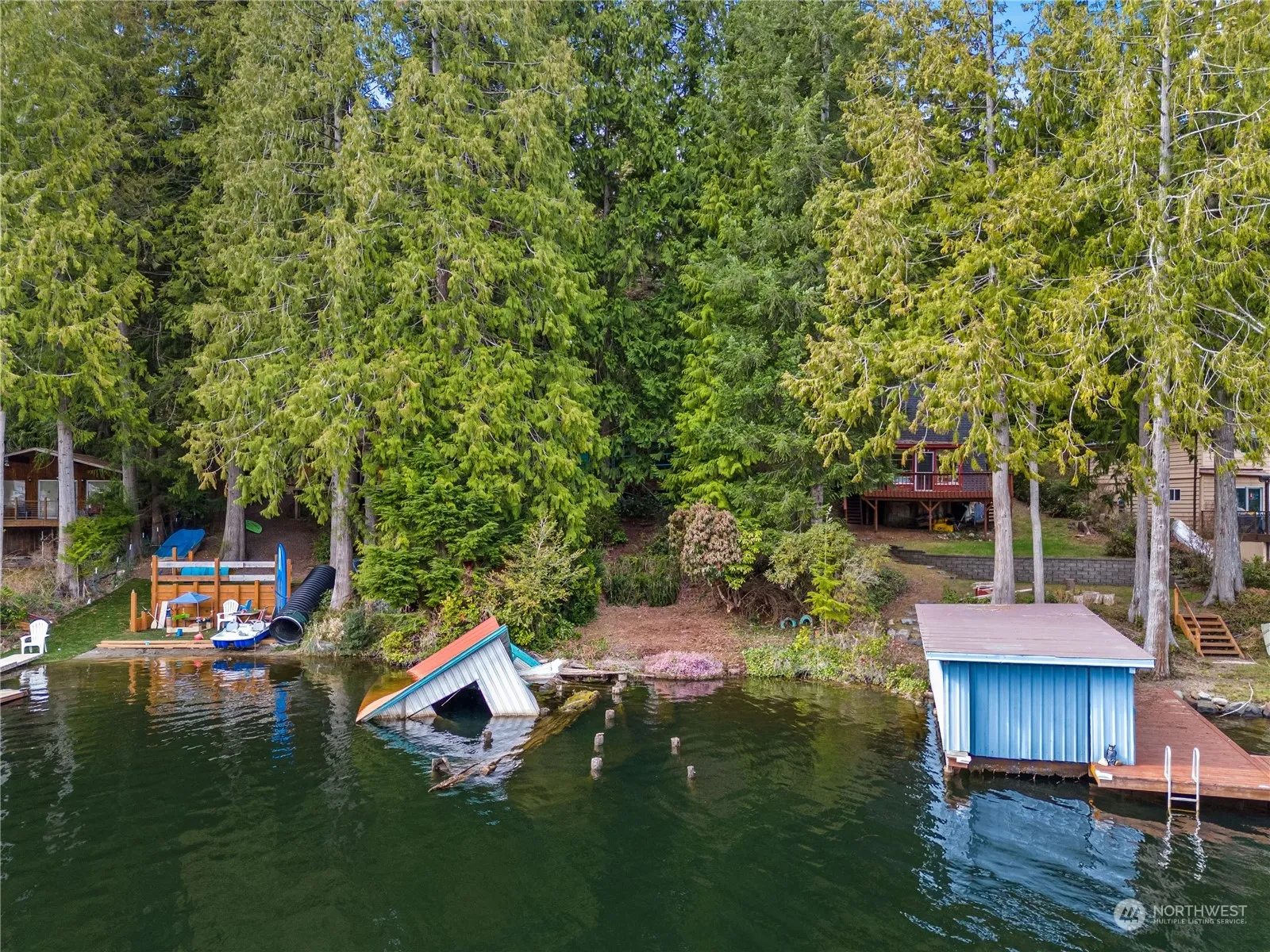 Wonderful opportunity to own waterfront on Lake Roesiger, a motor boat lake. Positioned in the no wake area between the 2 ski areas, you can enjoy watersports in the summer and tranquility all year round. There’s an old cabin, a dock site w/some posts still in the water, a shed by the water and an old boathouse that has seen better days. This place has been left unloved for a while, and could be restored to it’s glory again with some elbow grease and gumption. Electricity was once to the lot, no septic or water currently, and no reports available. Please no trespassing without an agent or representative with you. Enter the cabin at your own risk.