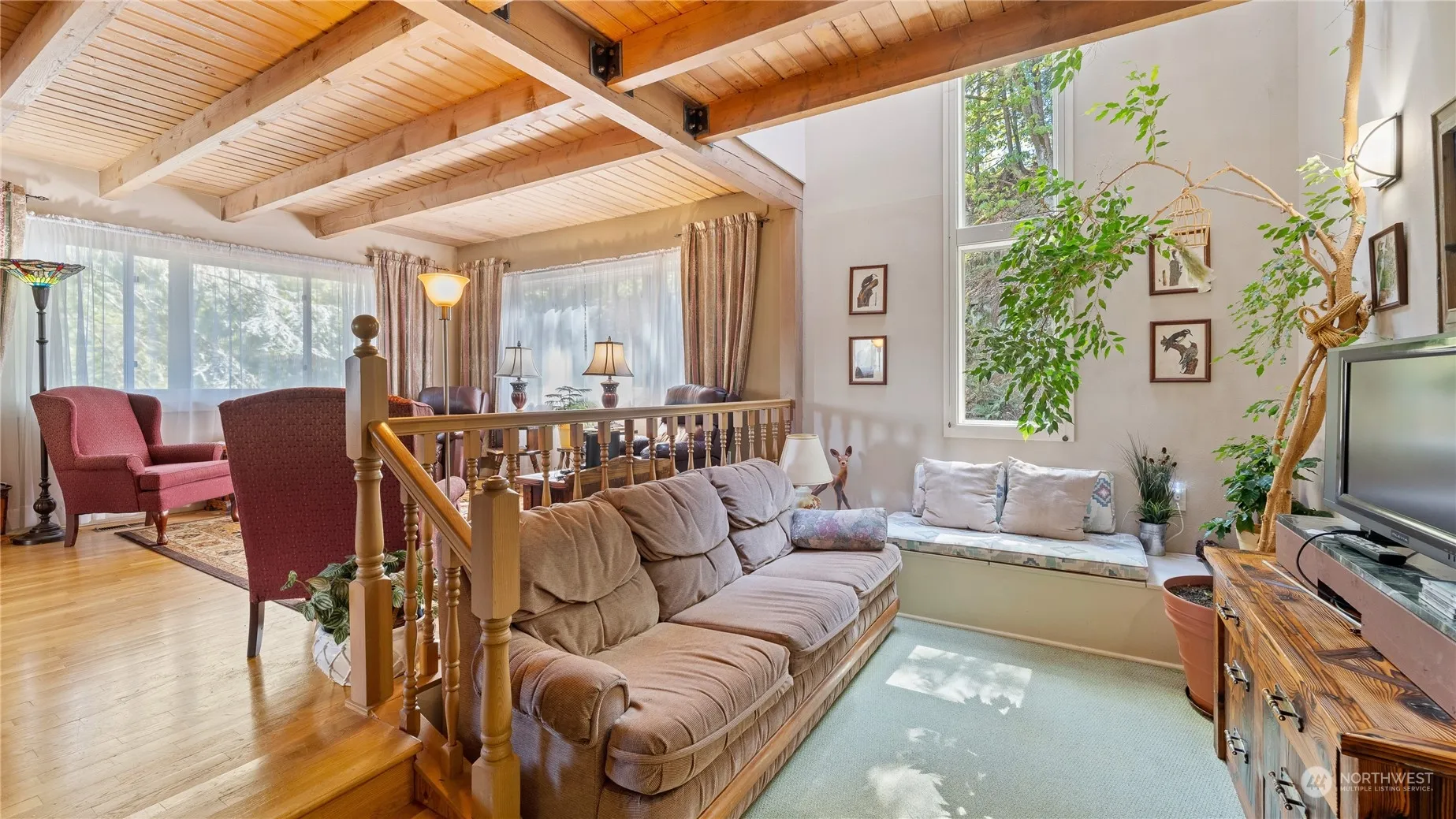 Room for everyone in this enchanting 3 bedroom 2 bath home at the end of a quiet cul-de-sac in a natural wooded setting with hanging gardens. Great-room concept on main level includes a sunken music room for private recitals. The enormous garage with shop on lower level, wrap around deck with ramp to the main living level. And penthouse bedroom on upper level make this a must see property!. Walking distance to your own private Marthas beach, pools, tennis and sports courts, play field and golf course, boat moorage (if available). ;