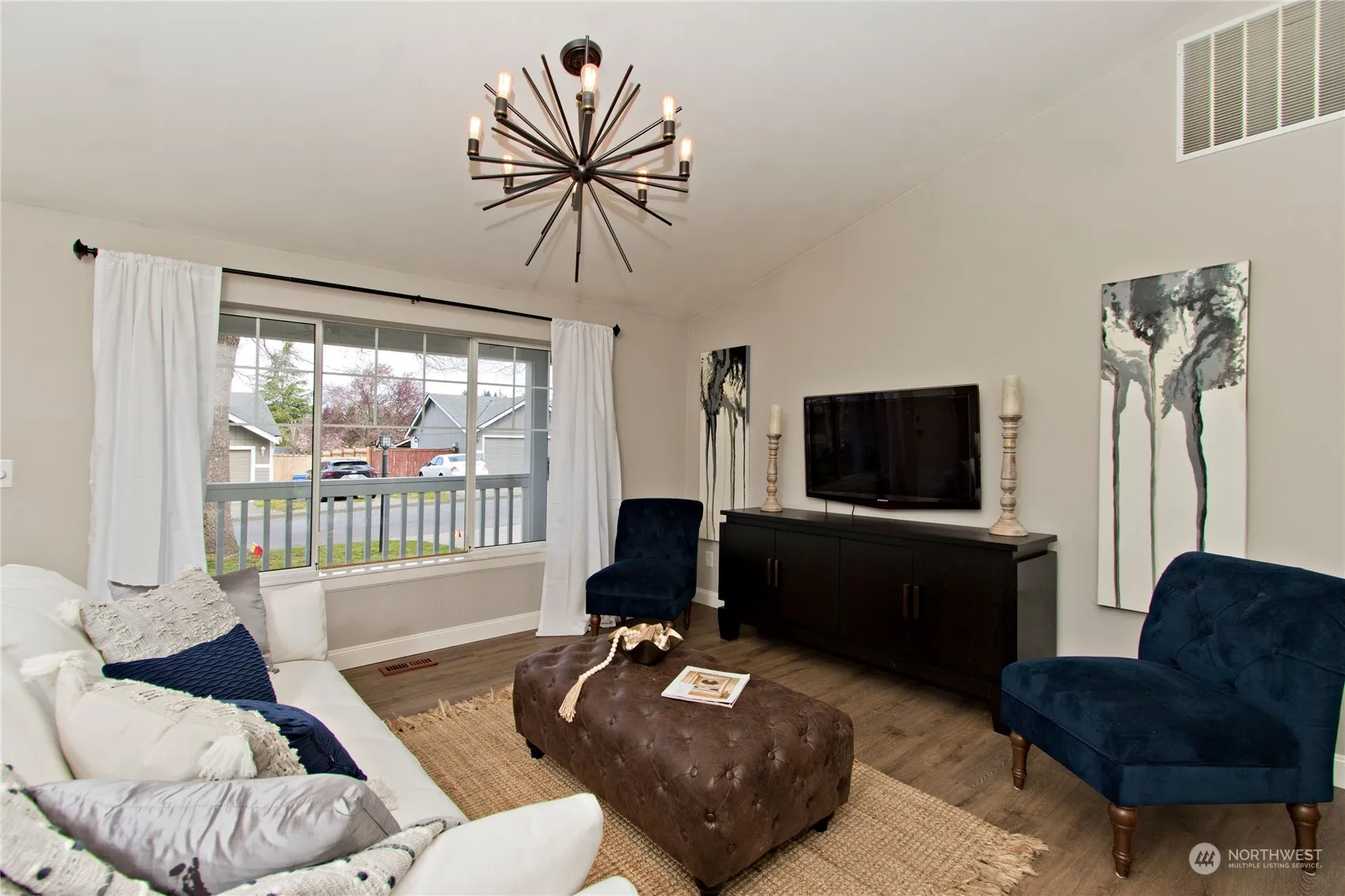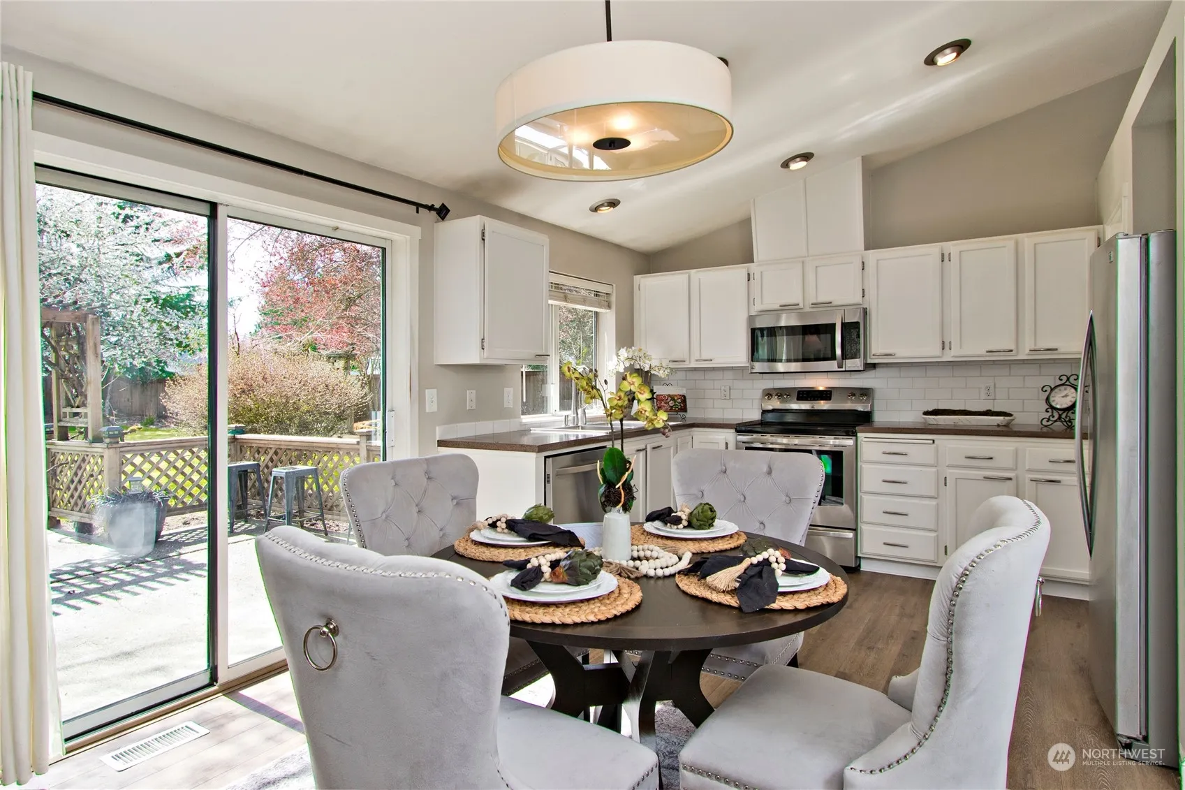 Small quaint development with a Buckley address on the boarder of Bonney Lake. Large lot 14,999sq ft fenced rambler. Vaulted ceilings, open concept, LVP flooring, updated kitchen with concrete countertops, updated light fixtures and bathrooms. Slider to the large patio overlooking the large fenced back yard, pond, garden area, fruit trees, RV parking, air conditioning and gate access from the back to your yard. There is a lot to list.