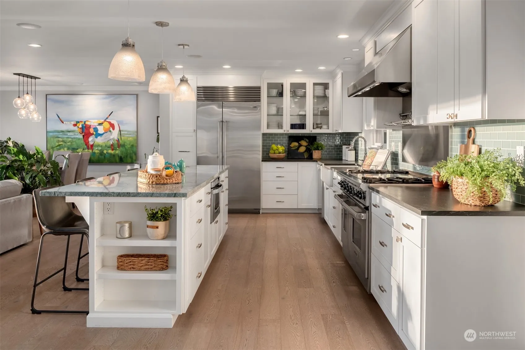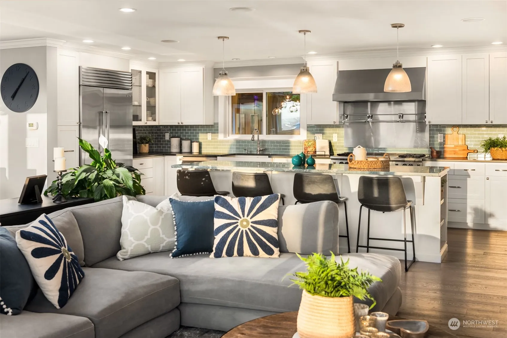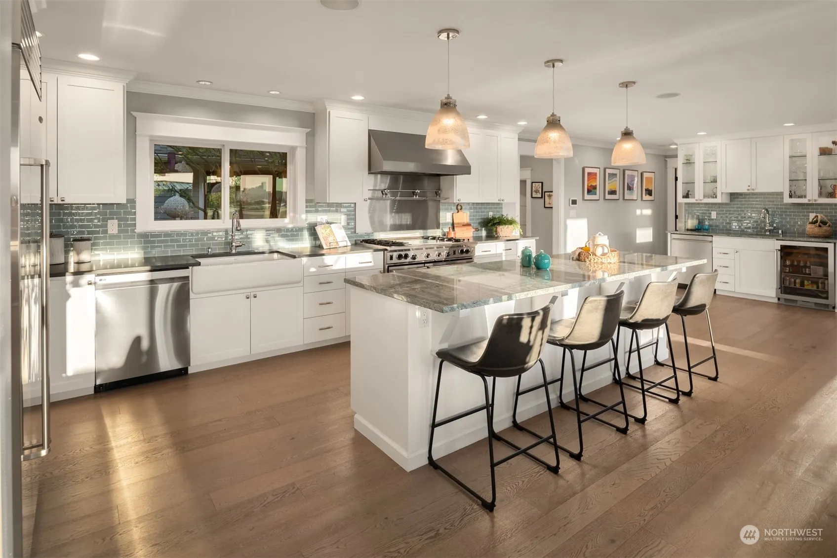 Discover comfort and luxury in Clyde Hill, where breathtaking views of the Seattle skyline and Olympic Mountains serve as your daily backdrop. This beautifully renovated home boasts a modern, easy-flowing layout with rooms bathed in natural light, including a sophisticated primary suite on the main floor. The expansive gourmet kitchen, equipped with high-end stainless steel appliances, is perfect for entertaining and culinary creations. Step outside to enjoy impressive outdoor spaces, including a large deck and a meticulously landscaped yard, ideal for leisurely gatherings. Featuring a 4-car tandem garage and numerous upgrades, this home is located minutes from Downtown Bellevue and combines modern conveniences with comfortable living!