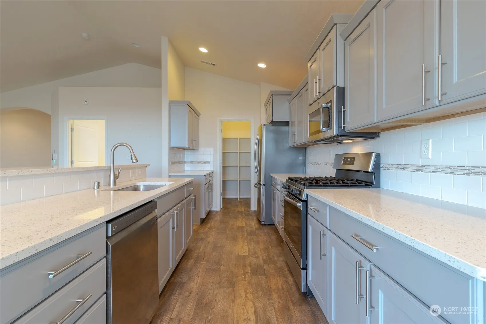 Solar powered!!! You will love this energy efficient home on the hill. Beautiful unobstructed views to the West from the covered back patio, perfect for enjoying the sunset and grilling with friends. New easy to care for vinyl plank flooring throughout the main living areas of the home. open concept kitchen/dining/living, highlighted with stainless appliances, quartz countertops, ample cupboard space & a walk-in pantry. Primary bedroom with en-suite bathroom featuring soaking tub, separate shower, private commode & large walk in closet. Nice separation of space between Primary & additional 2 bedrooms & guest bath provides privacy for all. Equipped with in home security system & ring doorbell. An oversized 3 car garage is the “bow on top”