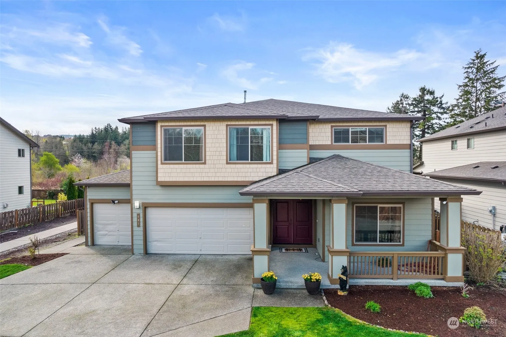 If you’re looking for a large open concept home, this is for you! With 5 spacious bedrooms 2 full baths up, a den on main w/ 3/4 bath downstairs- there’s plenty of room to spread out. The wide-open space on main has a massive kitchen w/ long island, quartz counters, tile backsplash, newer SS appliances, & LPV. Upstairs the primary bedroom is luxurious w/ five-piece bath, large walk-in-closet, and oh so spacious. 4 additional bedrooms up, & laundry w/ front loaders. New interior paint makes house bright! Fully fenced yard, three-car garage w/ another garage door-pass through to backyard. Tankless H2O heater, newer LARGE AC unit that cools the whole 3,359 sq ft! Large covered deck, stamped cement patio, gas bbq stub, wired for generator!