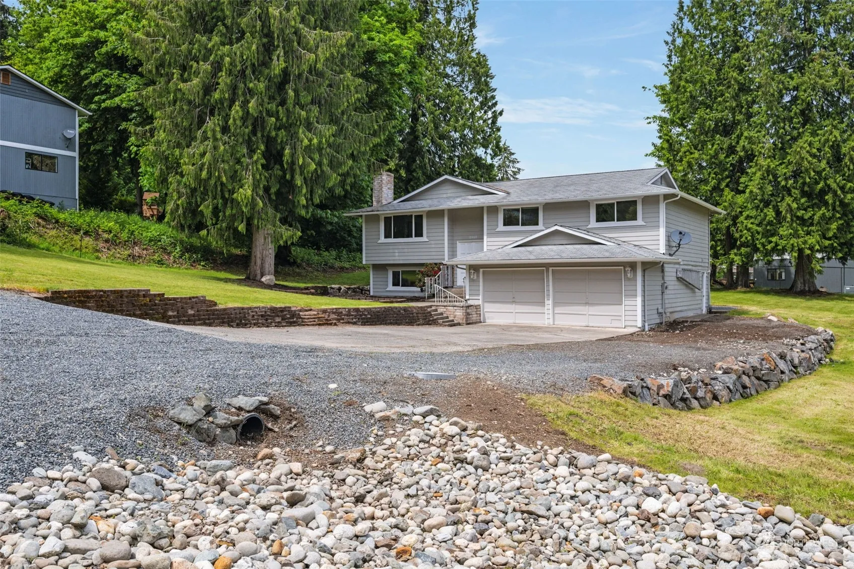 Opportunity awaits! This spacious 3 bedroom home is ready for your touch. Bring your dream home to life! Brand new exterior paint, carpet and freshly landscaped double-sized half acre lot w/ RV parking. Large living room with beautiful fireplace. Sizeable bedrooms and bathrooms. Primary is complete w/ en-suite. Downstairs you’ll find a great bonus room with living space and a wet bar ready to be revamped for you to enjoy. Ample storage space connected to your 2 car garage. Conveniently located near schools, shops, and Hwy access. Don’t miss this one!
