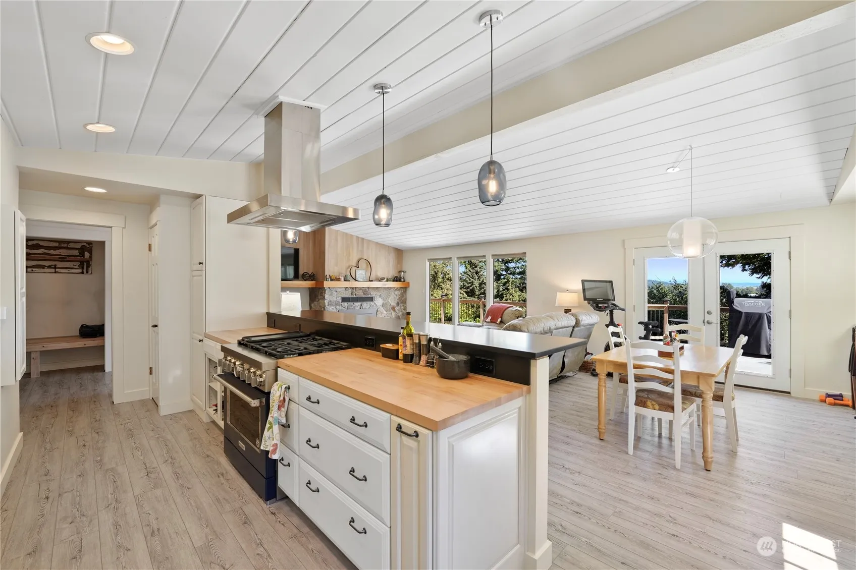 Wake up to breathtaking sunrises & views of the marina and majestic mountains from this stunning home. As you step inside, you’re greeted by vaulted wooden ceilings that create a warm atmosphere. French doors lead out to a balcony where you can enjoy your morning coffee while taking in the serene surroundings. The gourmet kitchen boasts a gas stove, elegant pendant lighting, & sleek stainless-steel appliances, perfect for culinary enthusiasts. The daylight basement level offers even more space to entertain or accommodate guests, featuring a large living area, full kitchen, bedroom, bath, and an extended private covered patio, ideal for outdoor gatherings or quiet relaxation. Shelter Bay amenities include sports courts, beach access & more!