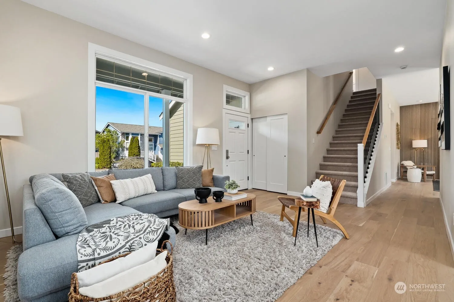 Sophisticated design/remodel on this north facing Bothell home located near Forsgren Park . Northshore school district. Circular fl plan on main with 10ft ceilings w oversize windows lets in tons of natural light. Modern kitchen cabinets, quartz counters, tile bksp, appliances. New engineered hardwoods on main, tile flooring, carpet. Fresh interior/ext paint. 4 beds and 2 ba plus laundry on upper level. 3 bdrm face South. Huge primary with new bath featuring designer tiles, glass shower, free standing tub and large walk in closet. New roof. New gas fireplace. New forced air furnace with central A/C. 2 car garage with EV Charger. Sunny south facing fenced, level backyard with patio. Cul-de-sac community.