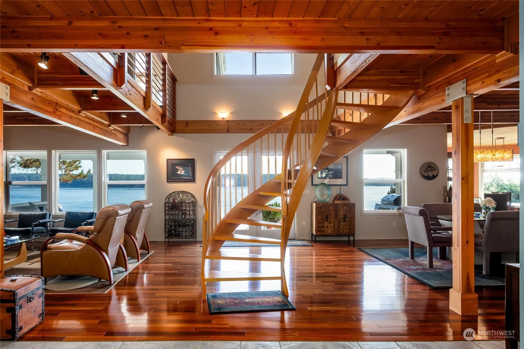 Excellent quality east-facing Cape Cod with a low-bank gravel and sand beach at Cape San Juan with 2557 sf, 3 bedrooms, 3.5 baths, newly updated kitchen, with Cambria quartz countertops, and bathrooms, many built-ins, two propane fireplaces, Brazilian Koa flooring, beautiful custom curved staircase, extensive storage, large Evergreen decks, oversized detached 2-car garage with office and multiple storage areas, washed aggregate driveway, low maintenance mature landscaping, and a small fenced garden area. Great attention to detail, stunning and very interesting views, and a wide variety of marine life including whales, seals, and sea lions, and SJ Channel is kind of like a river that runs both ways so there is always engaging marine life.