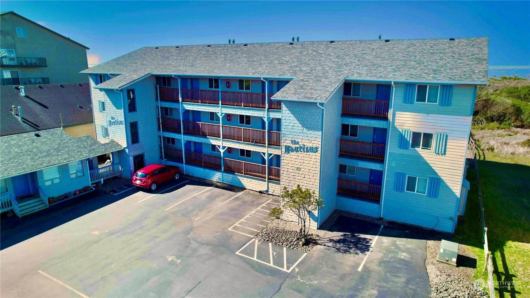 This active nightly rental condo, in fabulous Ocean Shores, can be your income property, vacation getaway, or home on the beach. This updated unit with new flooring, in unit new W/D, and a cozy fireplace, and deck, is turnkey and ready for you to add your personal touches. Very walkable to the downtown core, this conveniently located Nautilus building, is a short walk to the beach out back. Enjoy all that Ocean Shores and the surrounding areas have to offer. You have shopping, dining, fresh seafood, clam digging, beach combing, 23 miles to waterways through the canals/lake. It’s a recreational paradise. Ocean Shores Community offers annual fee membership that includes amenities as well, such as a club house, pool, library and restaurants.