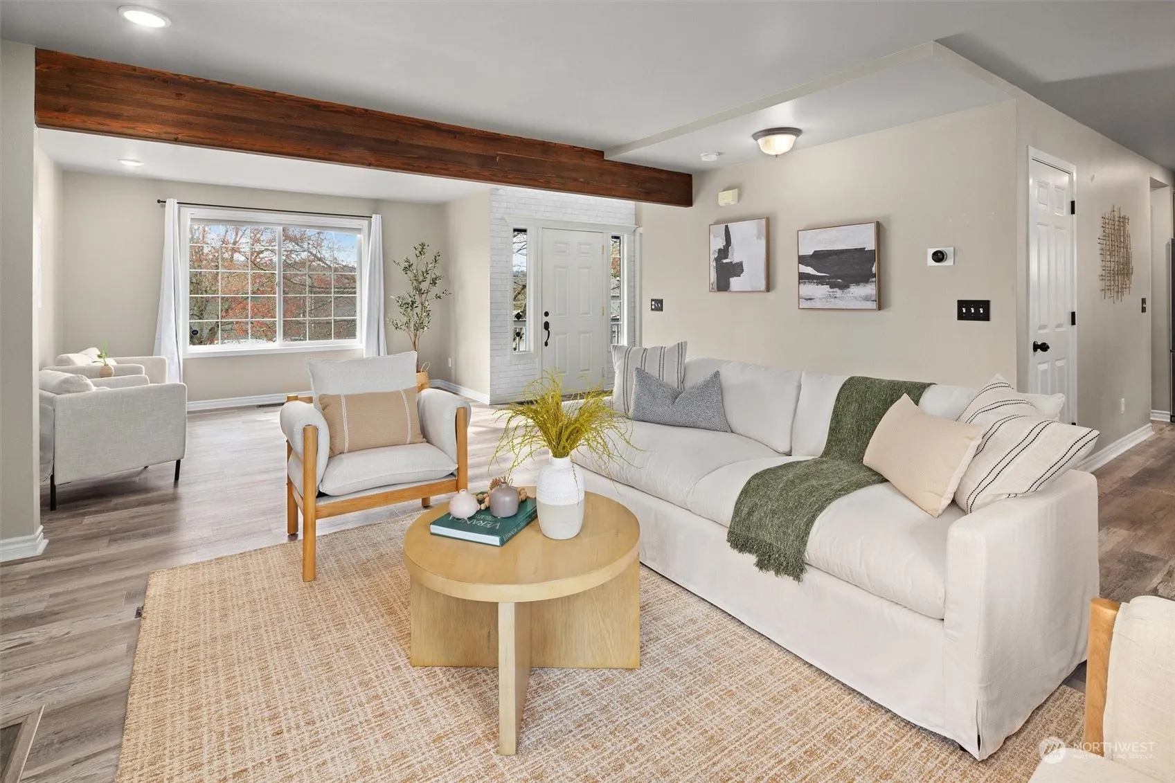 This bright and polished single family home lives better than a townhome: min. yardcare, no HOA dues, no shared walls! The open floor plan seamlessly connects the well-appointed kitchen, featuring a large central island and stainless steel appliances, to the dining and living areas with Quartz countertops. Fully remodeled, the exterior boasts new paint and partial valley views. The main floor showcases easy-to-care-for flooring, a flexible bedroom, and a fireplace. Upstairs, four bedrooms feature new built-ins. Stay cool this summer with air conditioning and enjoy the front porch or take a stroll to downtown, cafes, parks, and the riverfront. This home combines modern comfort and aesthetic charm.