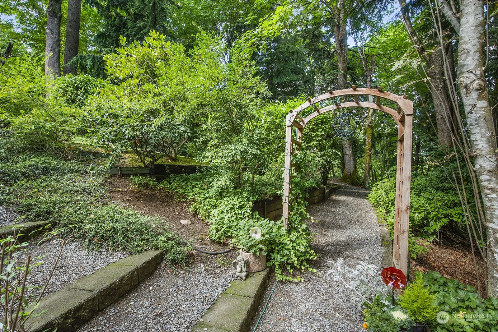 Experience all the splendor Lake Forest Park has to offer. Down a quiet drive in beautiful Sheridan, a gorgeous and tranquil setting awaits. Multilevel decks overlooking park-like scenery – a professionally landscaped private retreat. This large home is perfect for entertaining, with light filled spaces and a vaulted cedar ceiling. Main floor features living/dining room, extra-large kitchen and family room. Big rec room downstairs with 9’ ceilings. Expansive primary bedroom includes a custom bath with heated tile floor. Convenient to Lake Washington, Burke Gilman Trail, LFP Town Center, commute and great schools. A wonderful place to call home.
