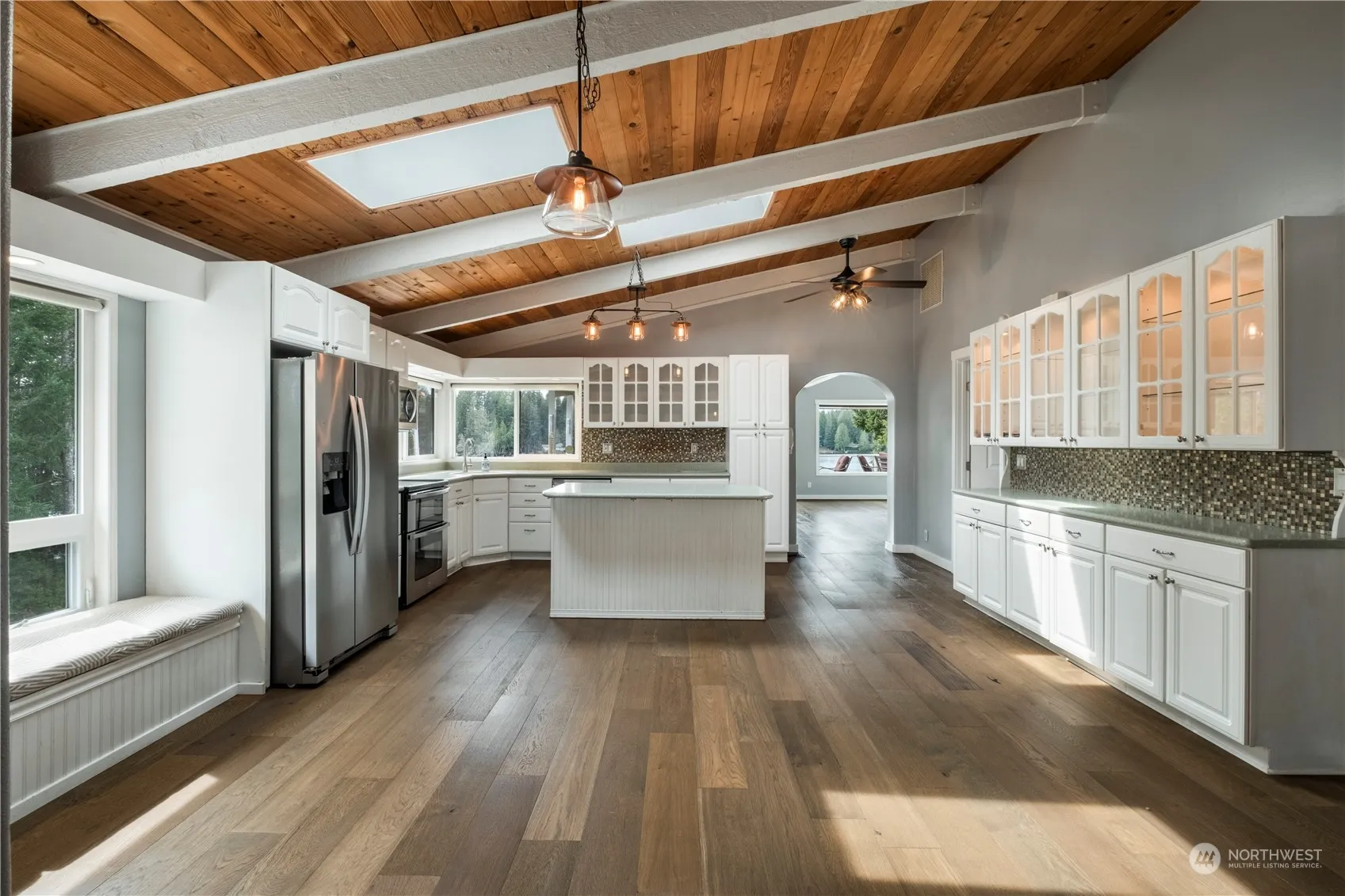 Are you ready for the Lake Life! Set off the road, perfectly perched for a coveted waterfront lifestyle, this special home marries comfort, privacy, & natural beauty. An inviting abundance of natural light streams through large windows boasting panoramic views of the lake, creating an atmosphere of relaxation & tranquility. Notable features include stunning views, low maintenance covered decks, ample space for entertaining, numerous modern updates, a spacious 5 car garage providing storage for vehicles and outdoor gear, a tranquil park setting, 60 feet of no bank lake front & a private dock. An excellent opportunity for Airbnb potential. Escape the hustle and bustle of the city. Welcome to life at the lake and waterfront living!