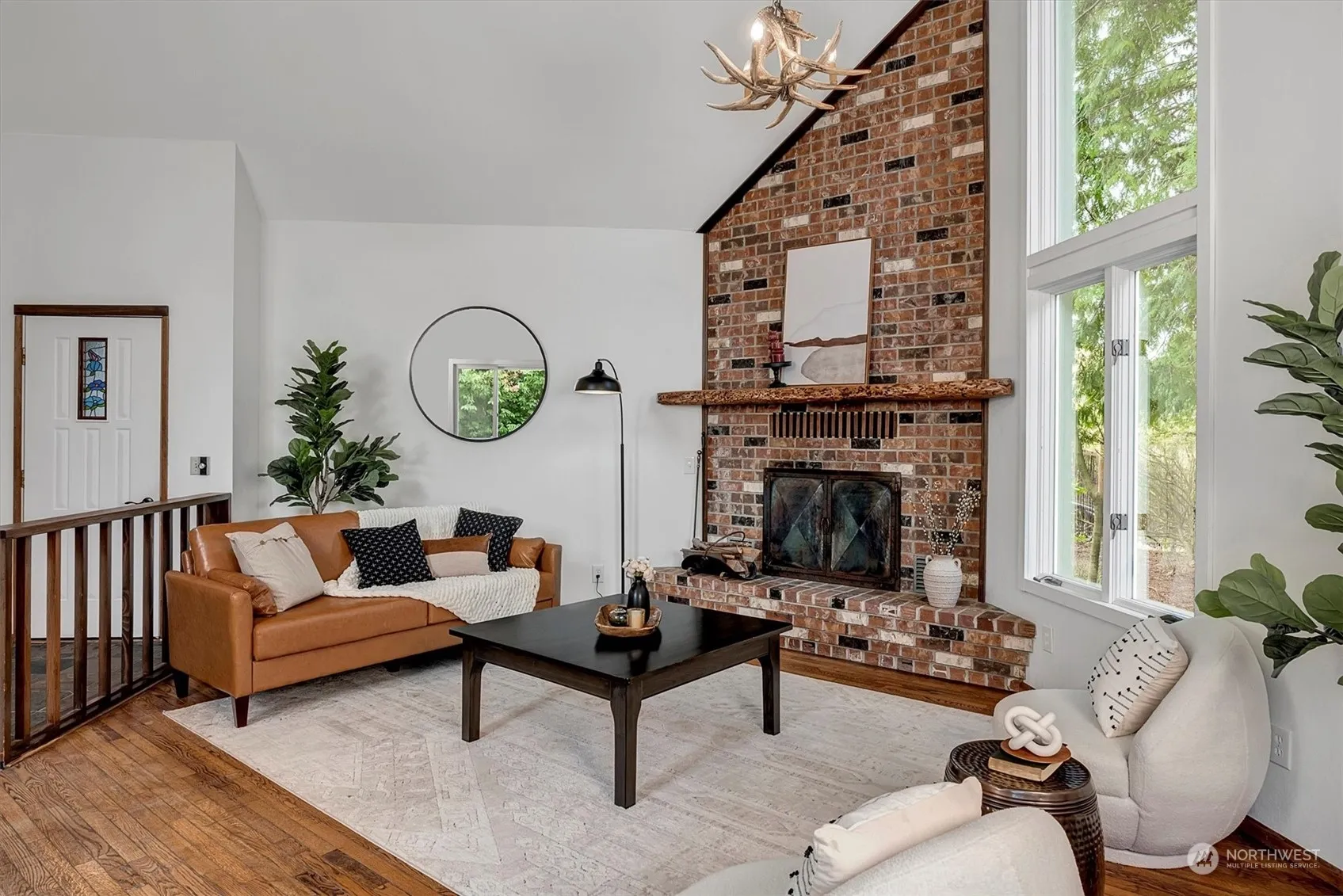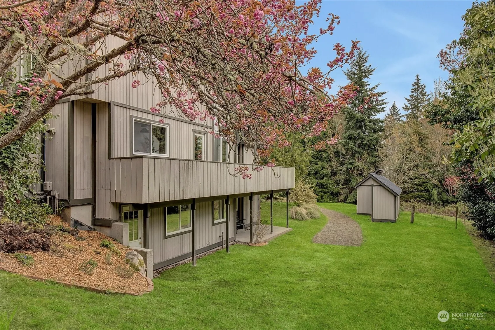 Lovely home on half acre has been thoughtfully updated and offers great flexibility with multiple units. A 2-story main room with walls of windows bring both forest & sun into open floor plan w/brick clad fireplace as a focal point. A high-functioning, farmhouse kitchen w/south-facing windows is open to dining/living rooms & generous on storage/counter space. Laundry, 3/4 bath, bedroom, & office also occupy this floor. Two beds + full bath on upper level. Spiral staircase connects to lower-level MIL complete w/living, kitchen, 1 bed, full bath, laundry. Private access allows flex for independent or combined living. Additional income opportunity w/2 bed, full bath, detached unit. Quiet, close to town and on the bus line!