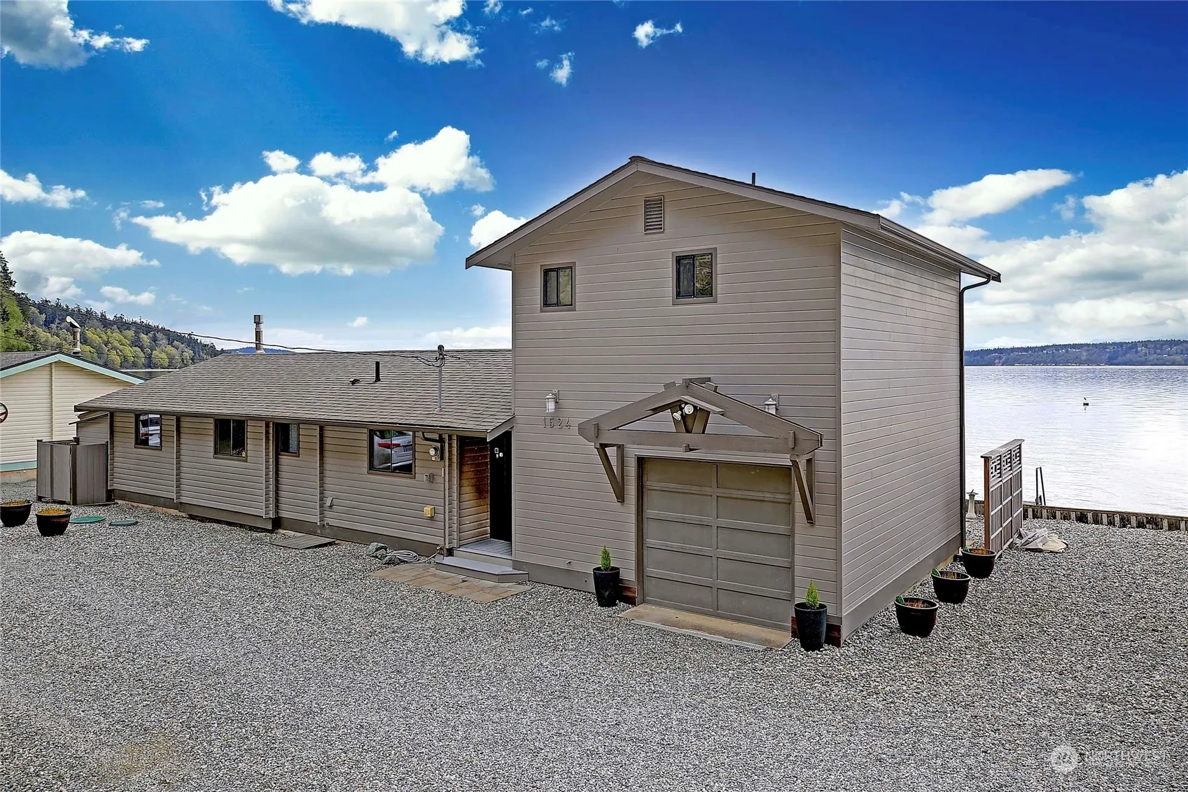 Immerse yourself in tranquil PNW waterfront living. This remodeled 1,408 sq.ft. 2BR home features rich solid wood interiors/exteriors – enveloping you in rustic elegance. Sweeping Salish Sea & Olympic Mtn. views to 93 ft low-bank beach embrace you. Retreat to the primary suite haven of authentic wood beauty. Let rhythmic waves lull you to sleep.Enjoy the expansive deck as sunsets paint the sky. Listen for whales. Convenient boathouse, davit & private buoy.An hour from Seattle, this thoughtfully remodeled turn-key home offers ultimate lock-and-leave convenience for rejuvenating escapes or island lifestyle. Short-term rental use allowed.
