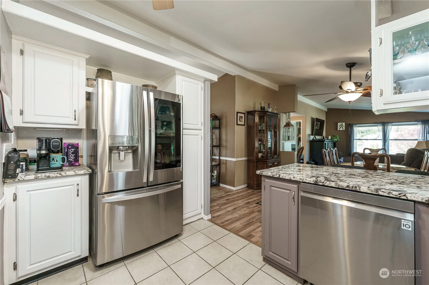 Must see upgraded/remodeled home. Spacious bedrooms, vaulted ceilings, Kitchen updated, all stainless appliance 2-3 yrs old, Granite. Engineered floors. New carpet. New roof 2018, New Trane HVAC in 2023. Six windows replaced with Anderson windows, Deck updated with new cedar lumber, 400 SQ ft Workshop/craft area. Carport, fenced yard. Bathrooms are updated/remodeled.