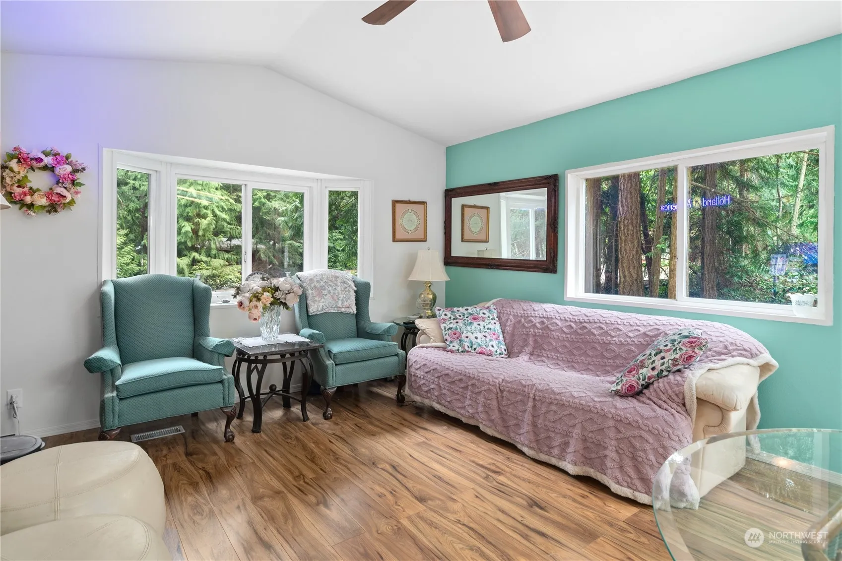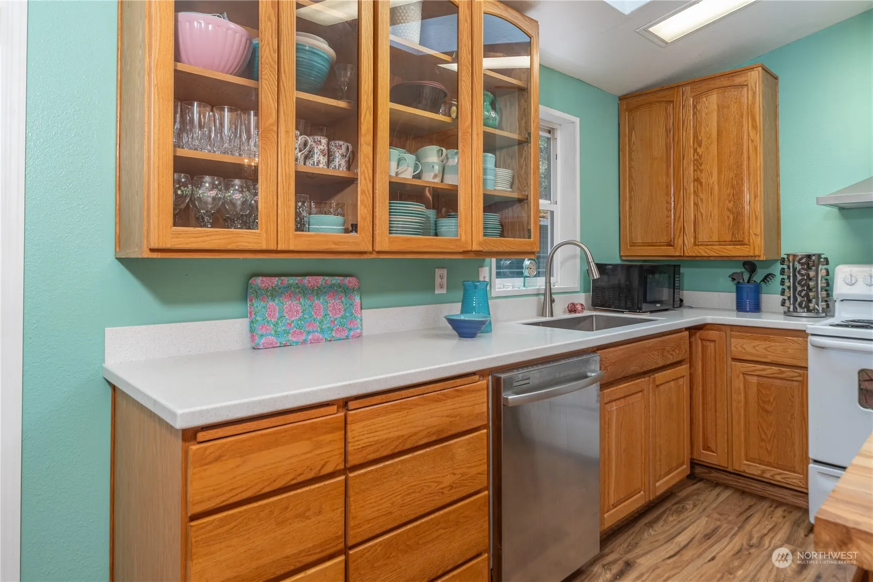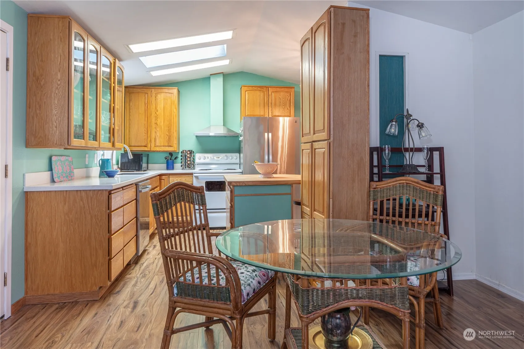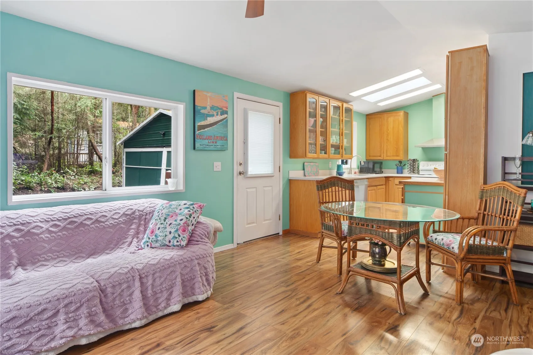 Welcome to your charming new home! This freshly painted gem boasts updates galore, including a modernized kitchen with ample storage, adorned with a stylish island and new countertops. Revel in the comfort of two cozy bedrooms complemented by a renovated bathroom. Feel secure with new doors, a new hot water tank, and a newer roof. Outside, a spacious (approx.) 1/3 acre lot hosts a large insulated, heated shop/garage, perfect for hobbies or storage. Embrace a lifestyle of comfort and convenience in this delightful abode! Home is on leased land which offers the perk of lower taxes. The park fee is $350 per month.