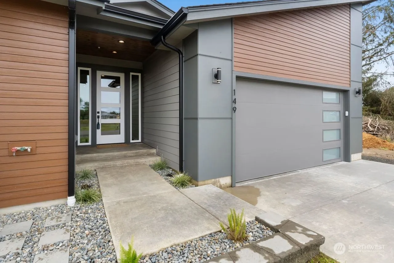 Beautiful New Custom Modern Home, if you are looking for that Larger single story House this is a Must see. 1875 feet 3 Bedrooms 2 Full Baths, Open floor plan, with vaulted ceilings. Quartz countertops, LVP floors, Wine bar, Shaker cabinetry, has a Blue tooth speaker in Master Bath, Interior walls are insulated, 9 foot ceilings, 2 panel solid core doors, custom tile bathrooms, Cat/Cable wired. Central heating with A/C, Smart home appliances, Linear Propane Fireplace, Electrical panel wired for a Generator, Large 2 Car garage, Trex Deck in the Back, Walking distance to Oyhut and shops, 1/4 mile to Damon Point State park and a Boat launch. Not in the community club. Great location and very Private, can hear the waves crashing from the deck.