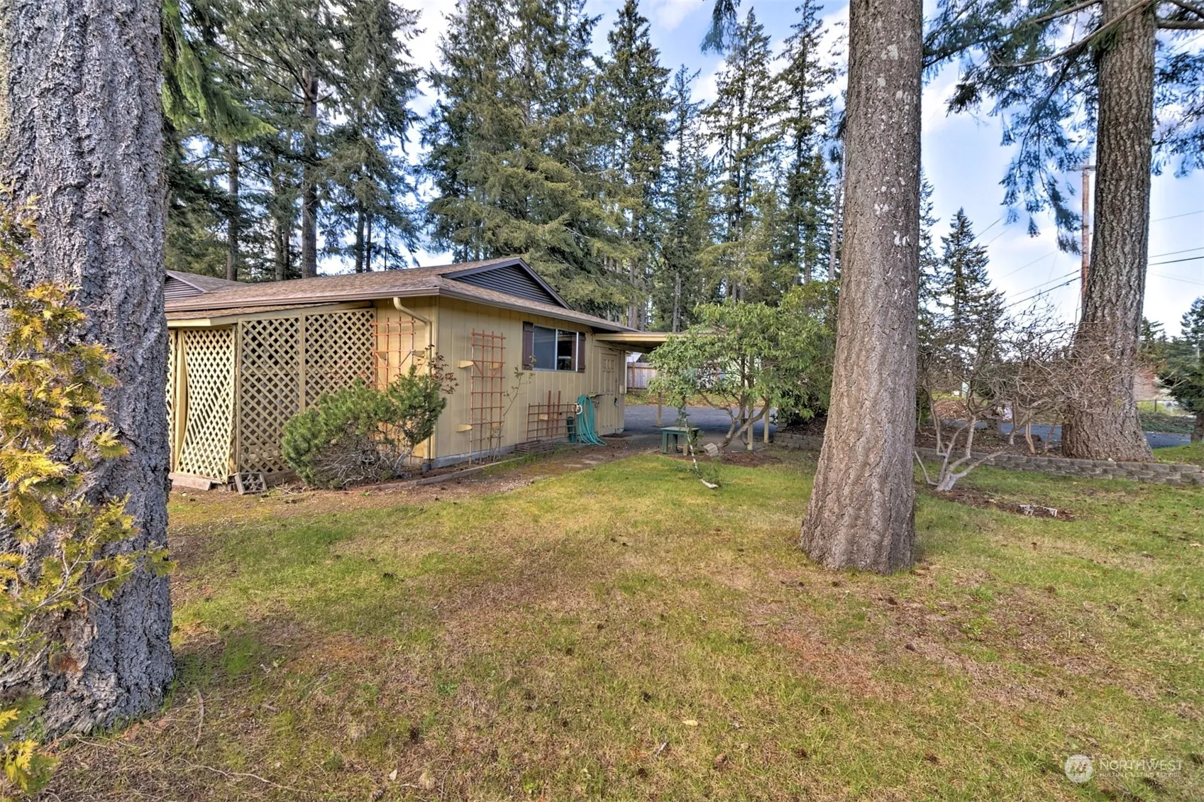 A very nice 3 bedroom 2 bath home located in a great spot for schools, shopping & access to Highway 101. It has good bones, newer windows & is ready for you to add your decorating touches. The living area has large windows looking out onto the big yard & also features a propane stove on a brick hearth. The dining room opens to a large covered deck that is perfect for rainy bar-b-ques. The primary bedroom has a full bath & the other two bedrooms are nice sized. Covered parking for 3 vehicles & there is a shed & greenhouse as well. Most of the 1/3 acre corner lot is fenced & provides good privacy. A perfect spot to start out or to size down! Includes a kitchen full of appliances too! Gig speed Internet – perfect for a home office.