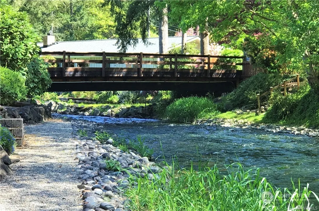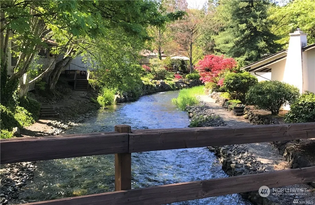 LOCATION, LOCATION, LOCATION…Extraordinary, quiet, private, serene setting on the banks of Chambers Creek. Enjoy all 4 seasons viewing & listening to the the flowing waters from living room, kitchen, master bedroom & patio area. You will feel like you are living on the banks of a forest stream. Stand alone unit features expansive living room w/gas fireplace insert, large master bedroom with pvt 3/4 bath & walk in closet, formal dining room, stainless steel appliances, breakfast area in kitchen & good sized guest room w/double closet. Attached 2 car garage w/tons of storage. HOA includes meticulously groomed yard, water, cable tv, building insurance. Complex borders a 100+ acre wildlife preserve.