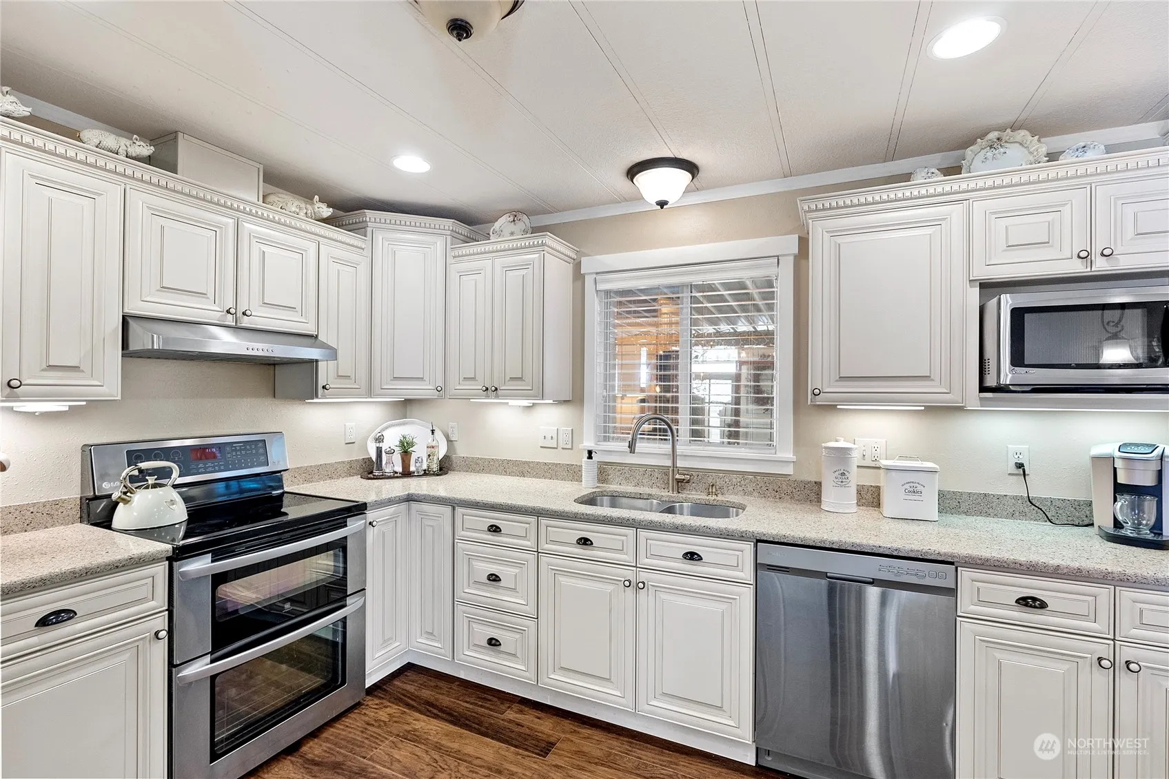 Discover the perfect blend of comfort and community in this fully updated manufactured home within Cedar Glen; a serene 55+ park. This home has an open layout, and features a roomy kitchen with stainless steel appliances, quartz countertops, and custom cabinets. The primary suite offers a walk-in closet and ensuite primary bath with oversized shower. Enjoy outdoor living in the private back yard. A like new shed provides ample storage. The community offers paved roads for leisurely walks, access to a clubhouse, events, and laundry room. Along the bus route and just minutes to downtown Poulsbo, shopping and Clearwater Casino Resort. This home is ideal for those seeking a move-in ready, low-maintenance lifestyle.